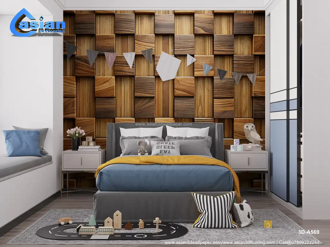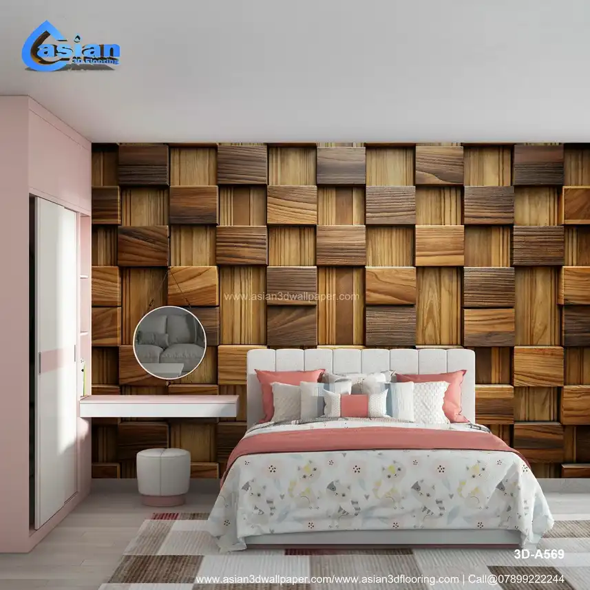 3D Geometric Wood Texture Wallpaper - Realistic Faux Wood Wall Covering||3D-A569