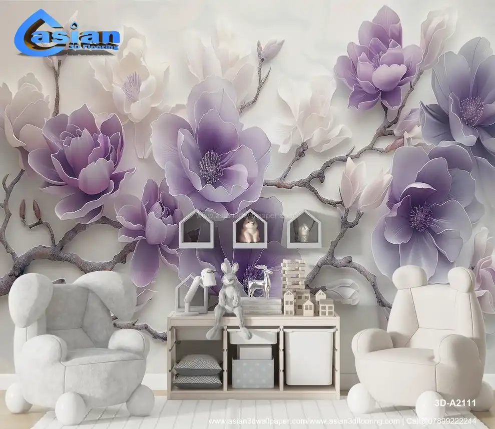 This elegant image showcases stylized magnolia flowers with a three-dimensional, sculpted, or embossed effect. The flowers are rendered in shades of purple and white, creating a soft and sophisticated color palette. The background is subtle and slightly textured, enhancing the depth and realism of the design. The overall impression is one of elegance, sophistication, and delicate beauty. The design evokes a sense of spring, renewal, and natural grace. Ideal for creating a calming and luxurious atmosphere in living rooms, bedrooms, spas, or as a serene desktop or phone background. High-resolution image available for download. Benefits:- Creates a calming and luxurious atmosphere with a touch of natural elegance and beauty. The three-dimensional effect and soft color palette make it visually appealing and versatile. High-resolution image suitable for various applications. Free download available.