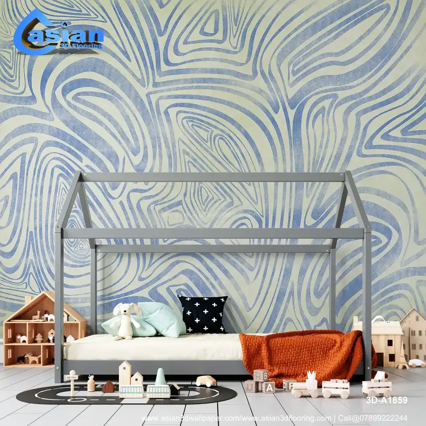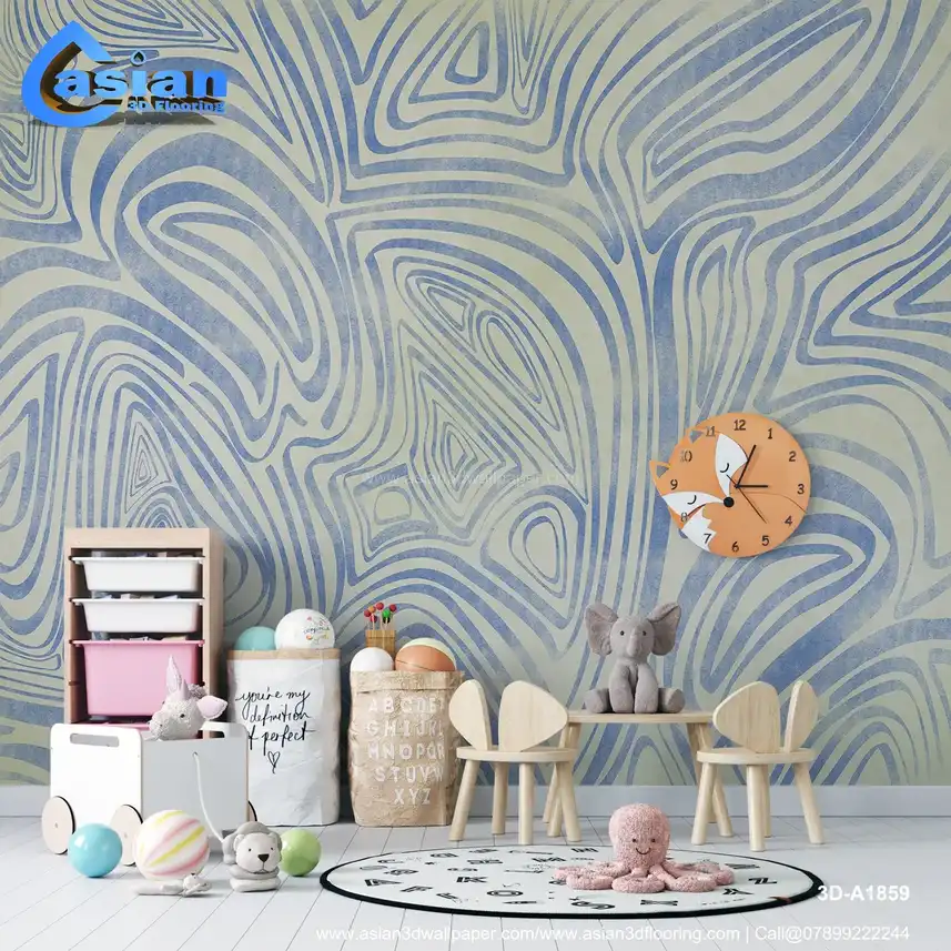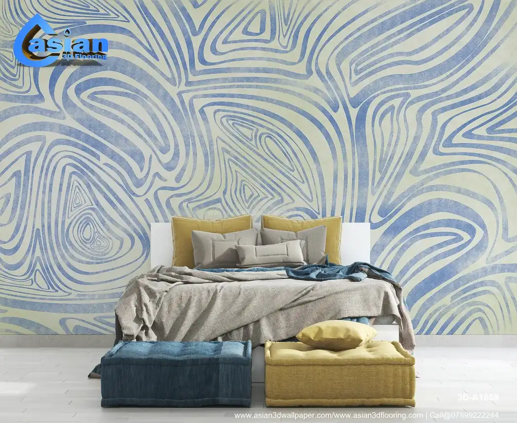 A unique abstract wallpaper design featuring organic blue lines, creating an illusion of fluidity and motion. Perfect for those looking to introduce minimalistic and geometric aesthetics into modern spaces. Benefits:- A contemporary abstract wallpaper featuring blue and yellow organic lines, ideal for modern, minimalist spaces.