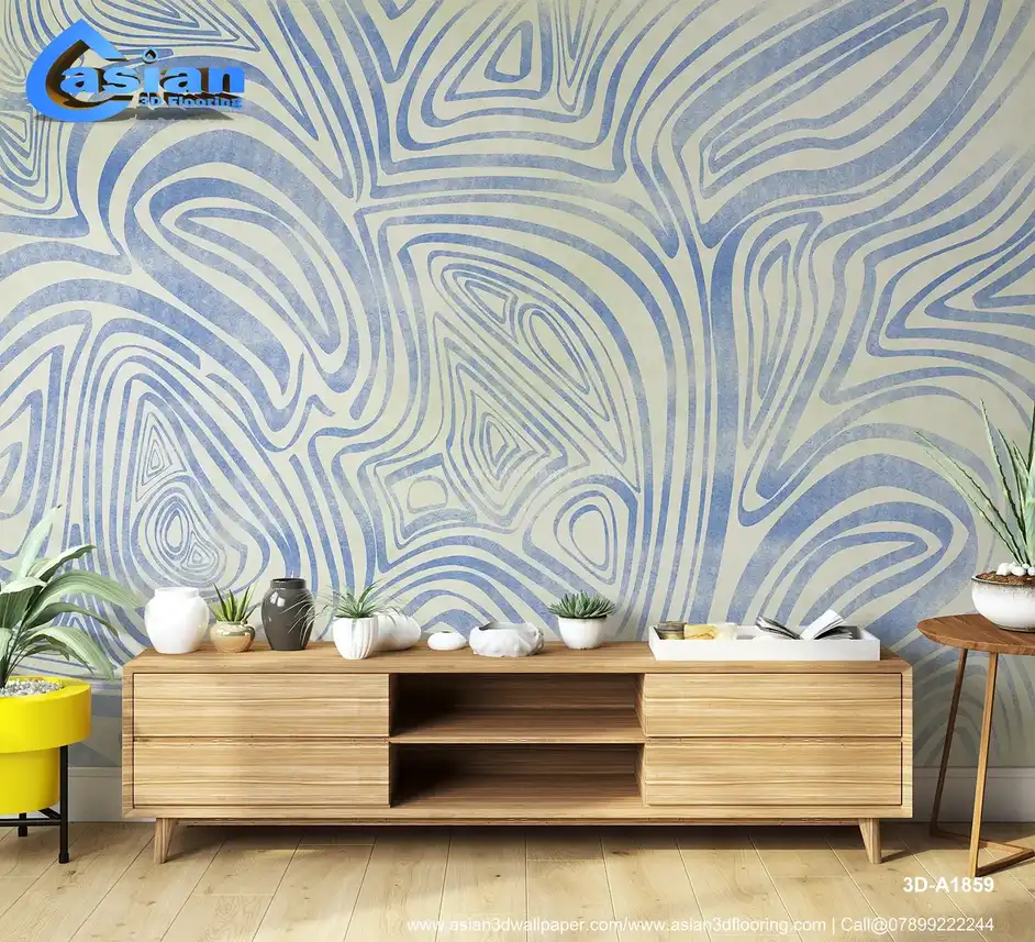 Abstract Blue Line Art Wallpaper ? Minimalistic Geometric Design||3D-A1859