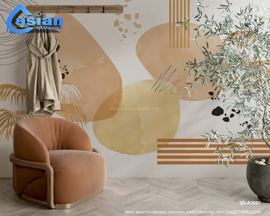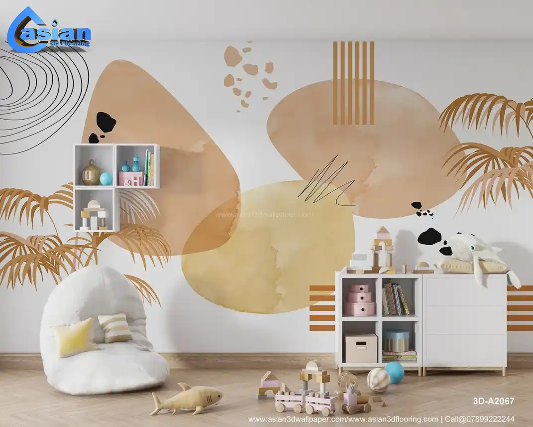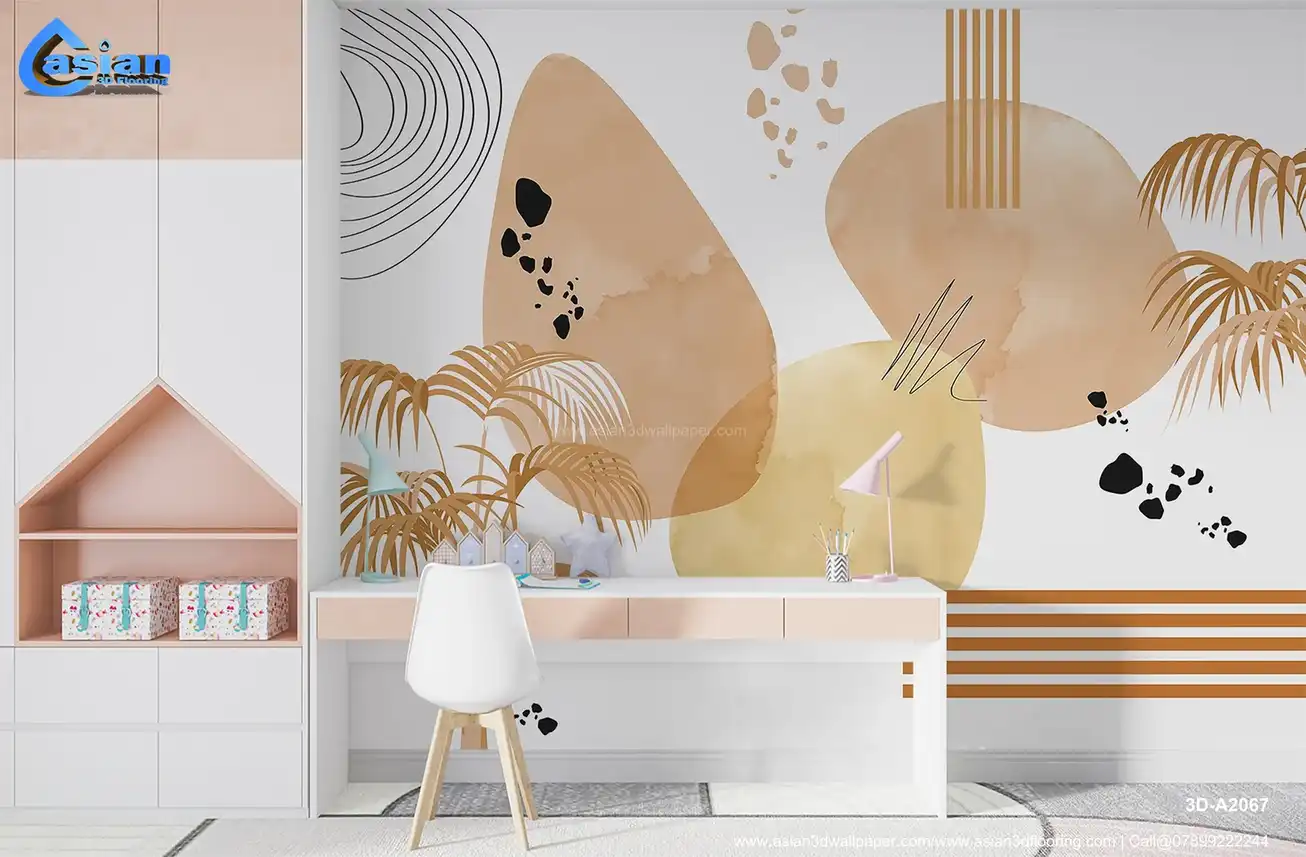 This modern art print features an abstract composition with geometric shapes, watercolor textures, stylized palm tree silhouettes, and linear elements. The warm, earthy tones of peach, beige, and yellow create a relaxed, bohemian, and natural aesthetic. Ideal for adding a touch of contemporary style and a calming atmosphere to living rooms, bedrooms, offices, or as a stylish desktop or phone background. High-resolution image available for download. Benefits:- Creates a calming and stylish atmosphere with a relaxed, bohemian, and natural vibe. The warm tones and abstract design are visually appealing and versatile. High-resolution image suitable for various applications. Free download available.