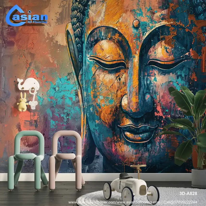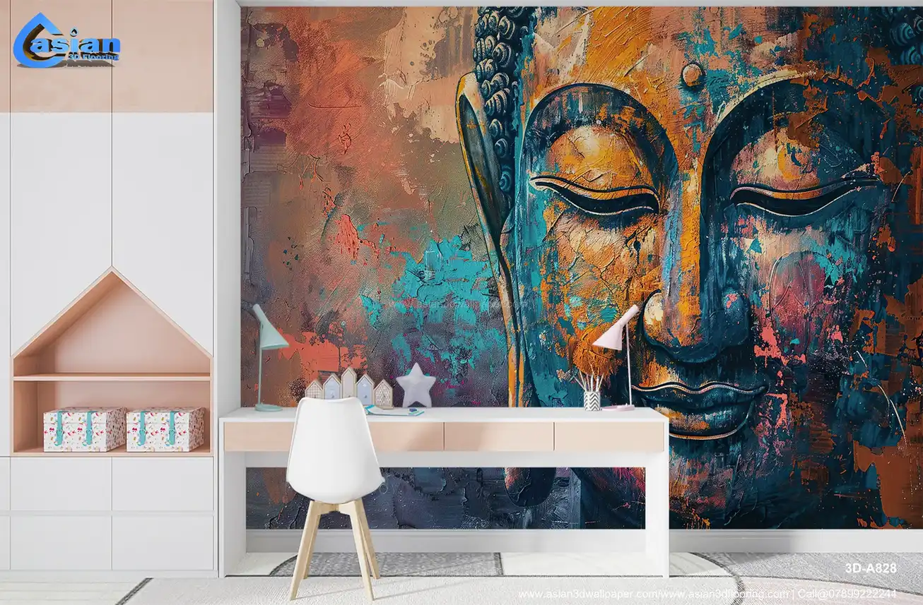 Abstract Buddha Face Art Print - Colorful Textured Wall Decor - Serene Spiritual Artwork||3D-A828
