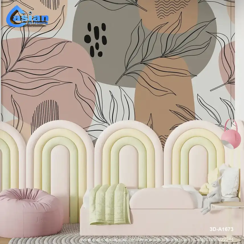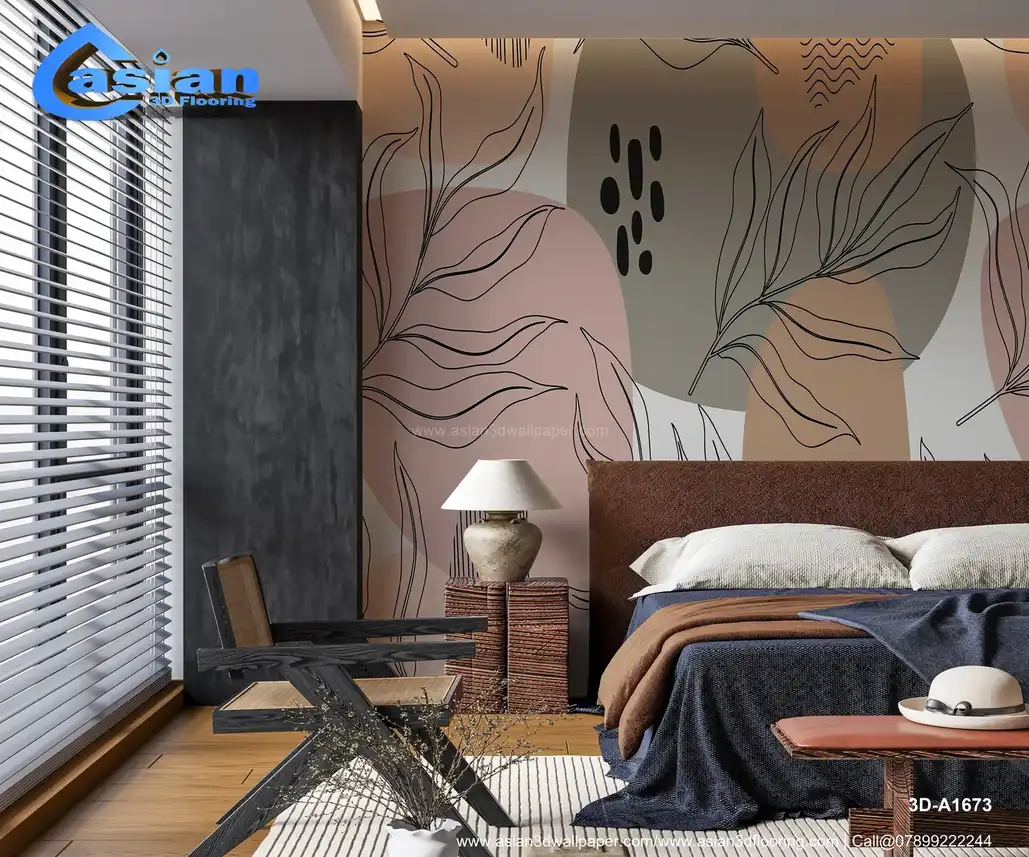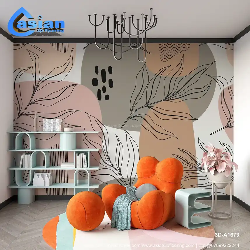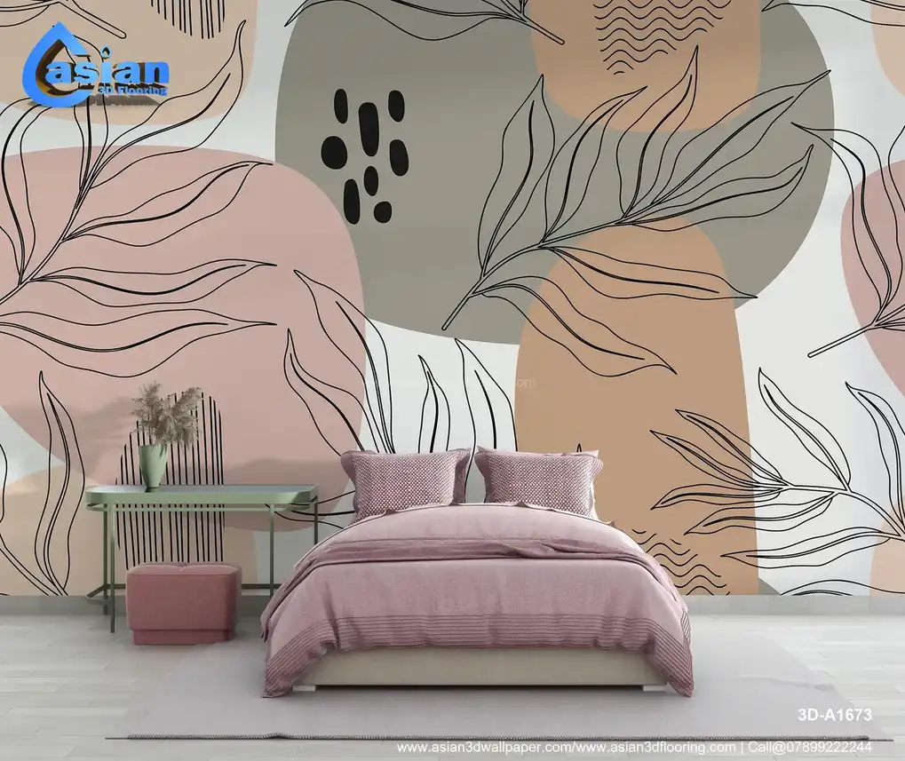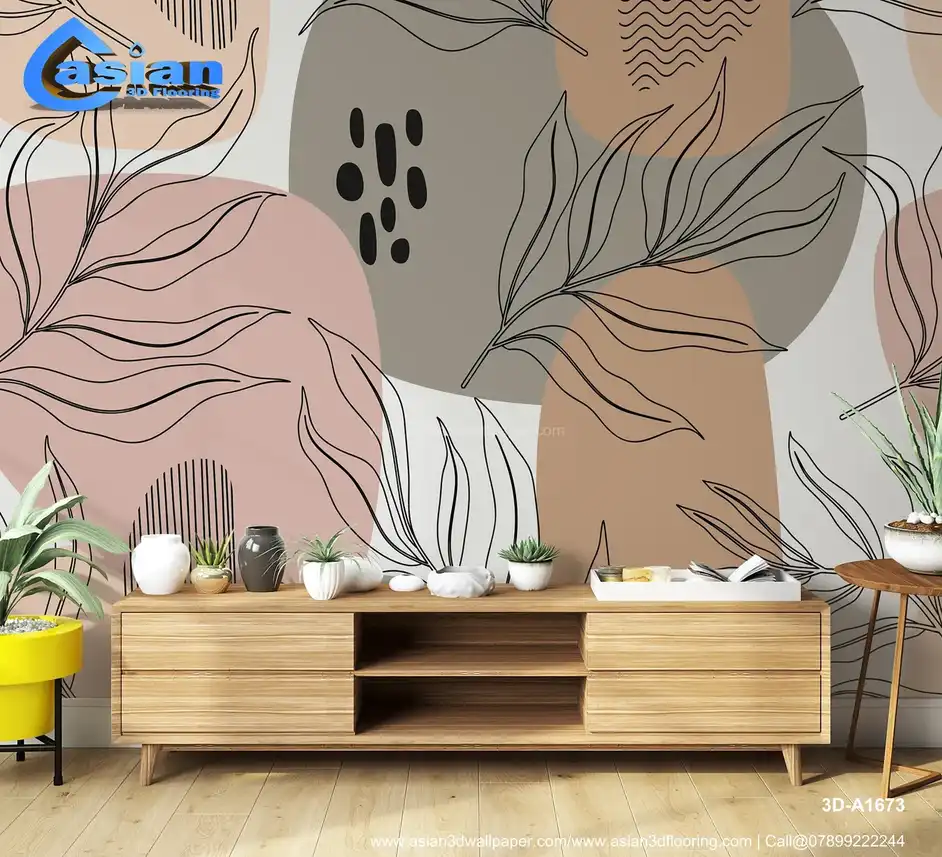 Abstract Floral Wallpaper with Bold Line Art||3D-A1673