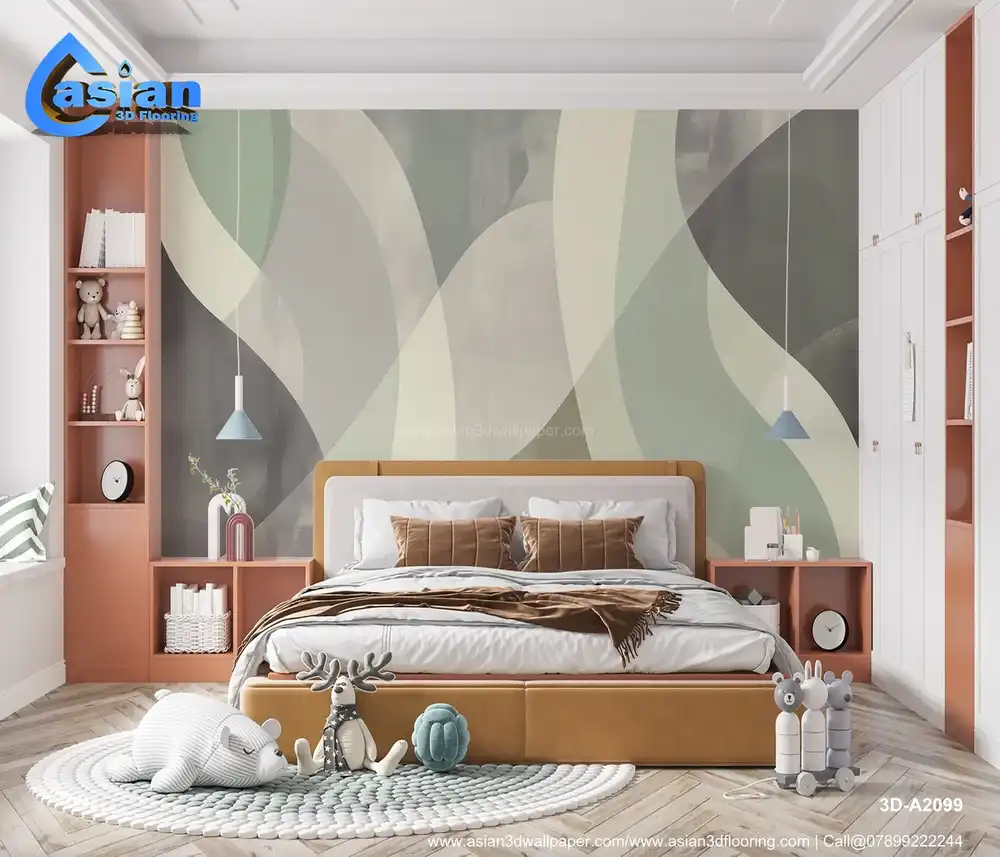 Abstract Flowing Shapes Art - Modern Minimalist Green & Gray Design||3D-A2099