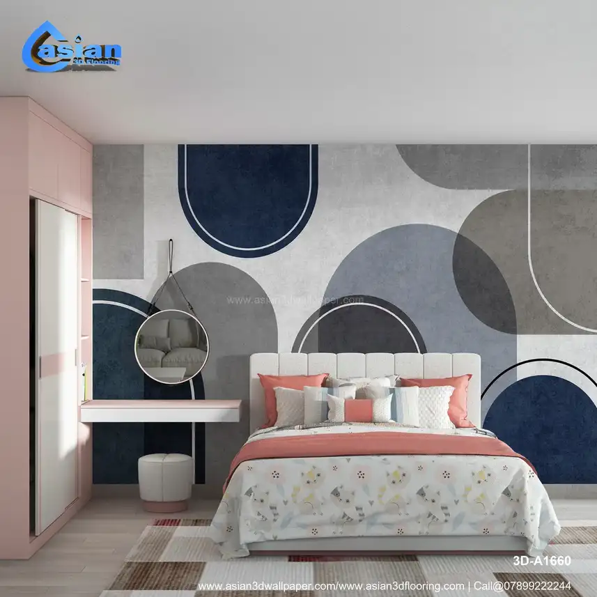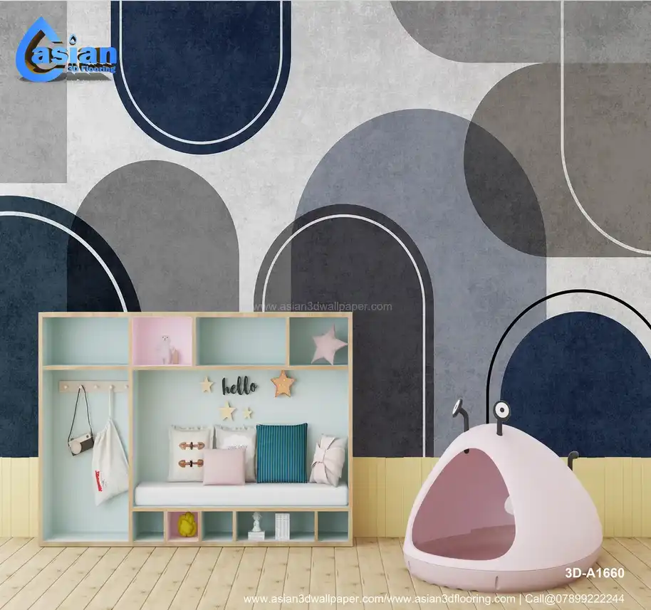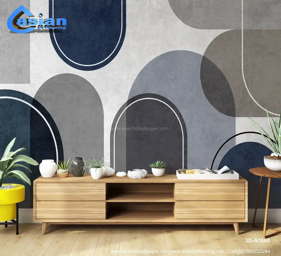 This modern wallpaper features abstract geometric shapes in shades of blue, gray, and white. Ideal for creating a stylish, contemporary vibe in your home or office space. Benefits:- An elegant blue, gray, and white geometric design to transform any room into a modern masterpiece.