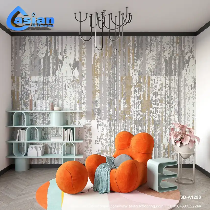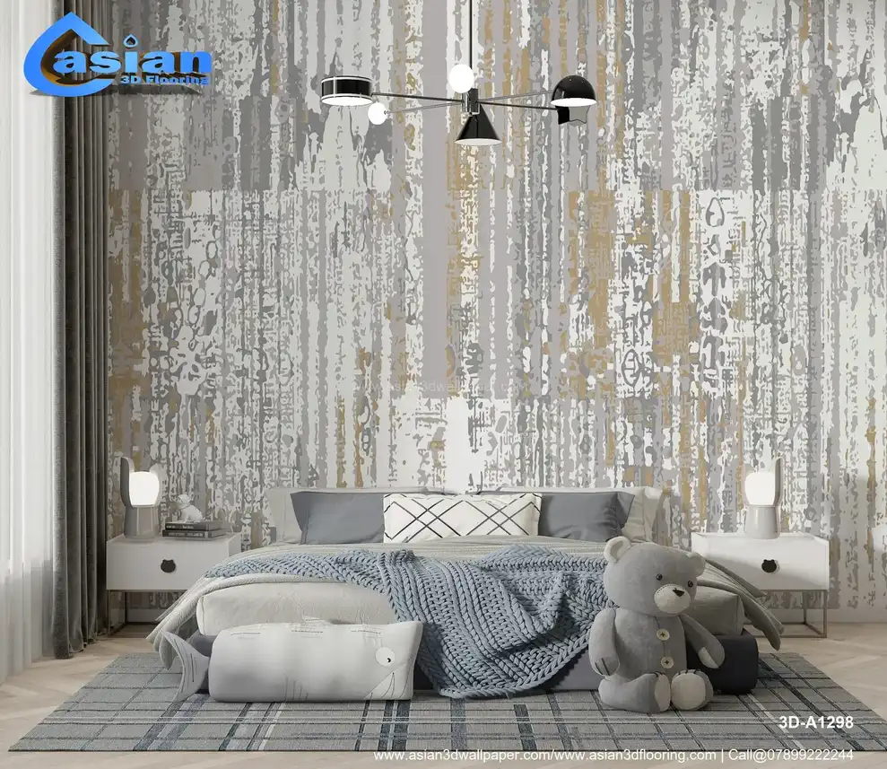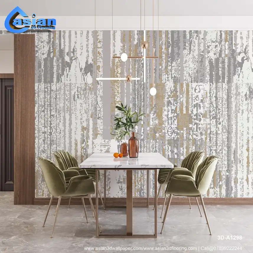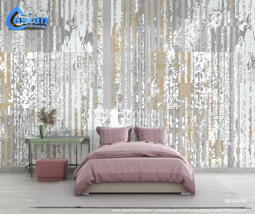 This wallpaper features an abstract distressed design in shades of grey, white, and gold. The unique pattern of vertical stripes, combined with a textured, grungy finish, makes it an ideal choice for modern or industrial interior spaces. Its soft metallic gold accents add a touch of elegance and luxury, while the neutral color palette ensures it complements various room styles. Whether you're decorating a living room, office, or bedroom, this wallpaper provides a sophisticated and contemporary look. Benefits:- Add a touch of modern luxury with this abstract grey and gold wallpaper, perfect for creating a chic, industrial-inspired look.