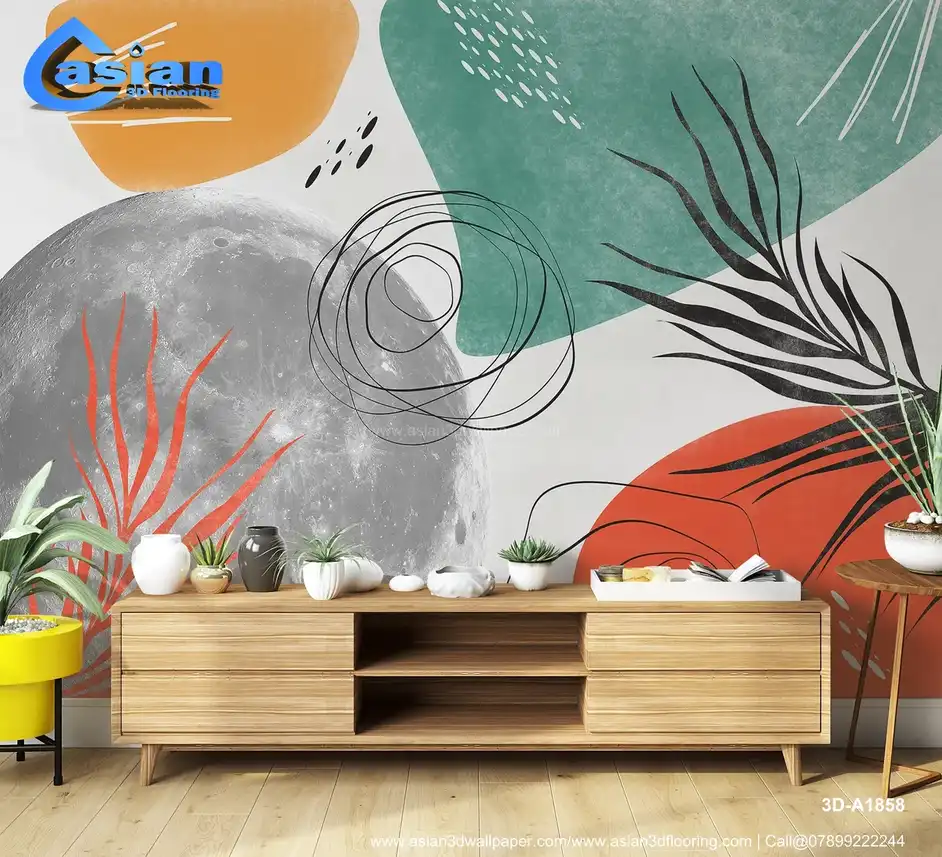 Abstract Minimalist Moon Wallpaper ? Modern Geometric Design||3D-A1858