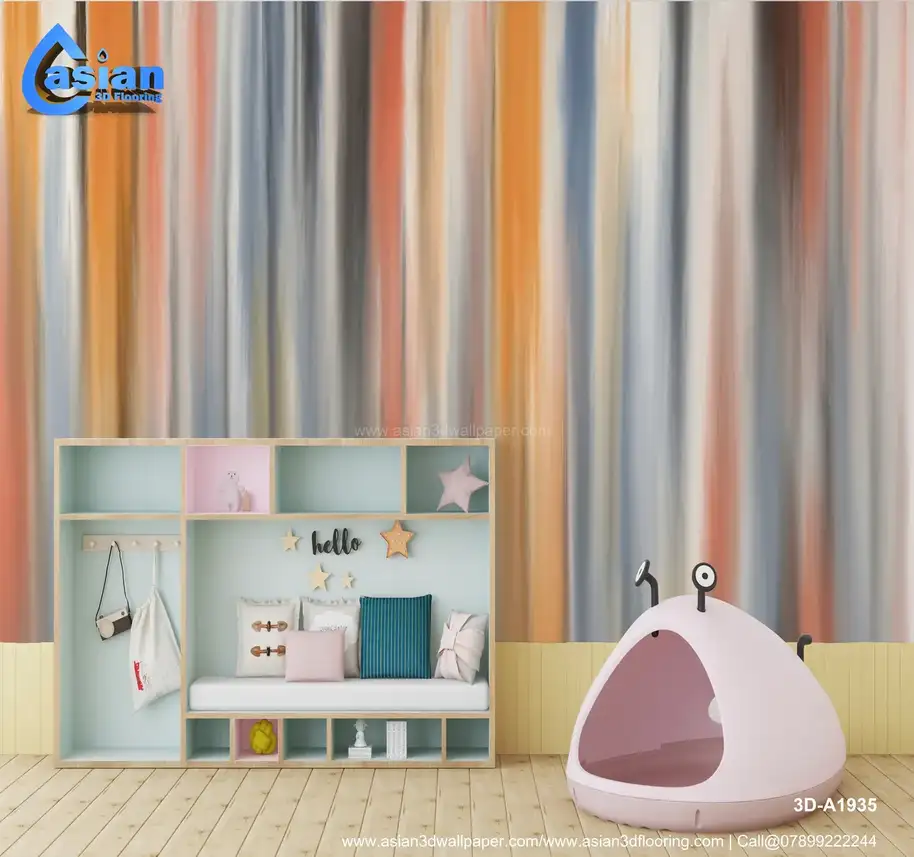 This abstract watercolor wallpaper design features beautiful flowing hues of orange, blue, beige, and cream, blending seamlessly to create an artistic, contemporary atmosphere. Perfect for accent walls in living rooms, bedrooms, or creative spaces, this design brings a unique, modern look that complements various interior styles. It provides an artistic, colorful element to any room, enhancing the mood and aesthetic of the space. Benefits:- Ideal for creating a bold and creative atmosphere with rich and vibrant tones, perfect for modern, artistic, and contemporary interior designs.