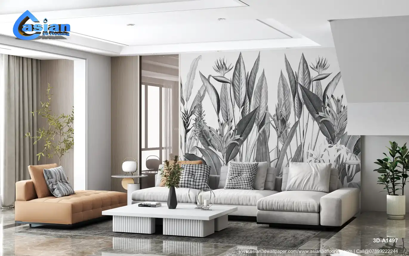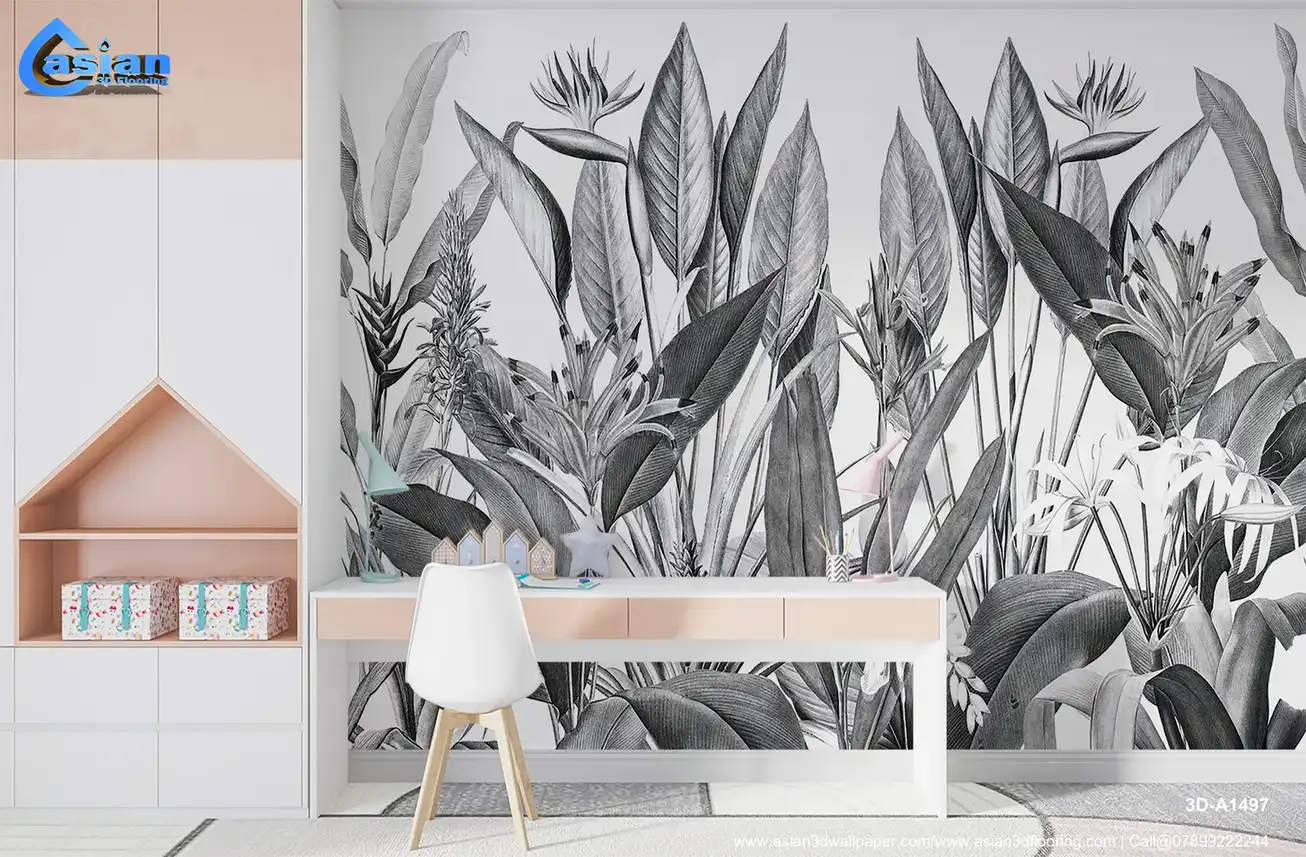 Black and White Botanical Sketch Wallpaper||3D-A1497