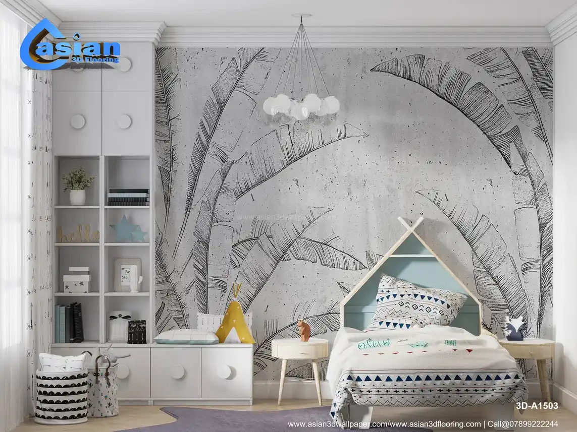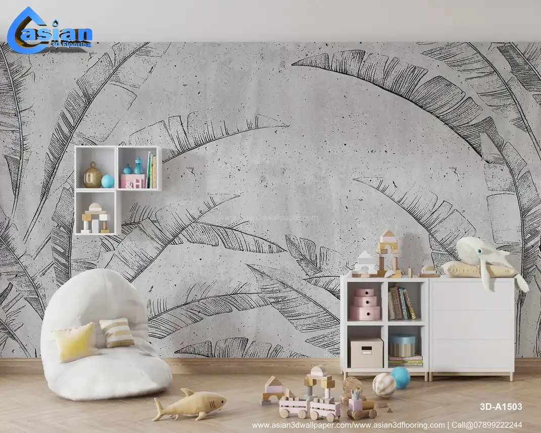 Black and White Botanical Sketch Wallpaper||3D-A1503