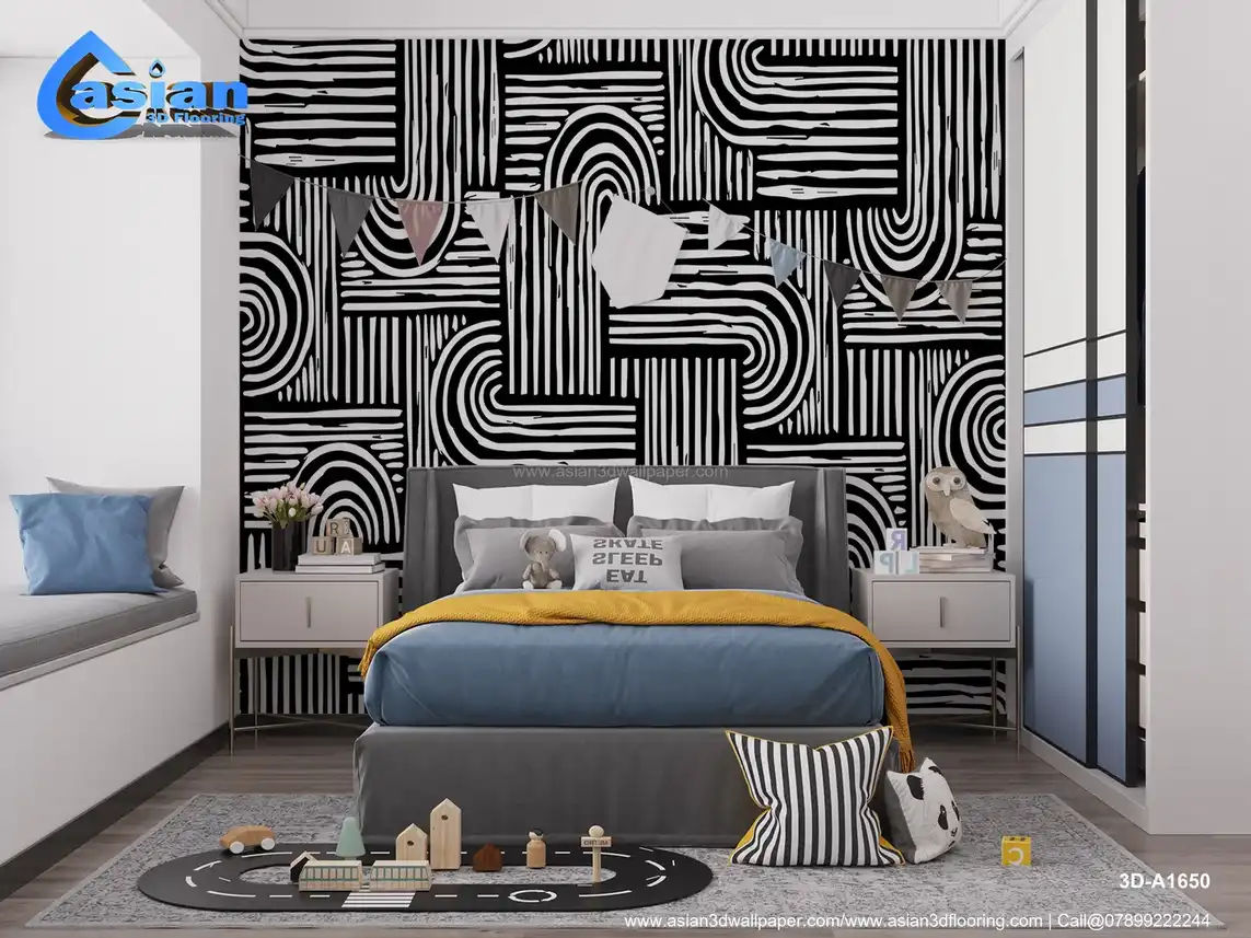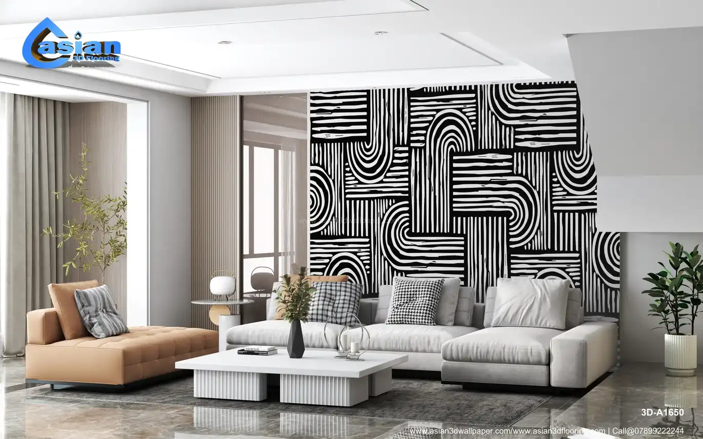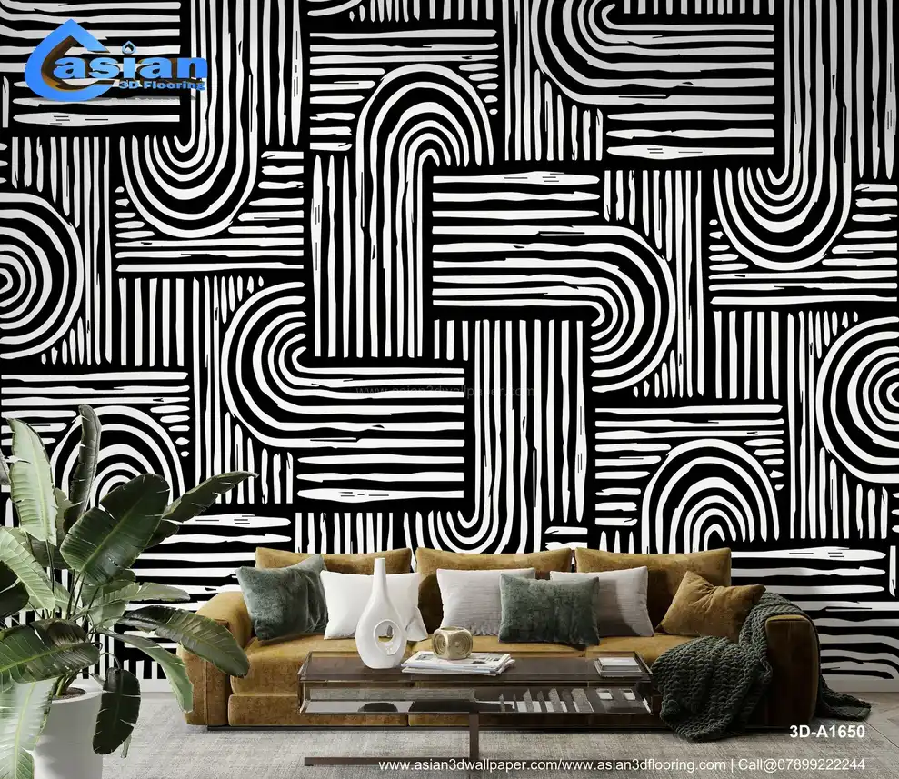 Black and White Geometric Lines Wallpaper||3D-A1650