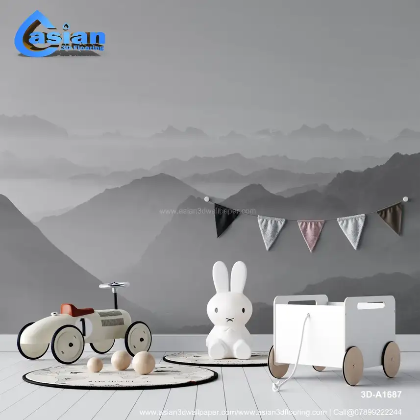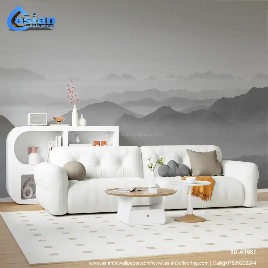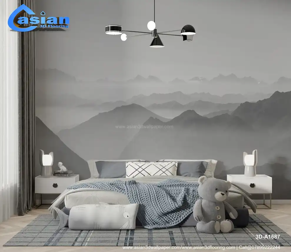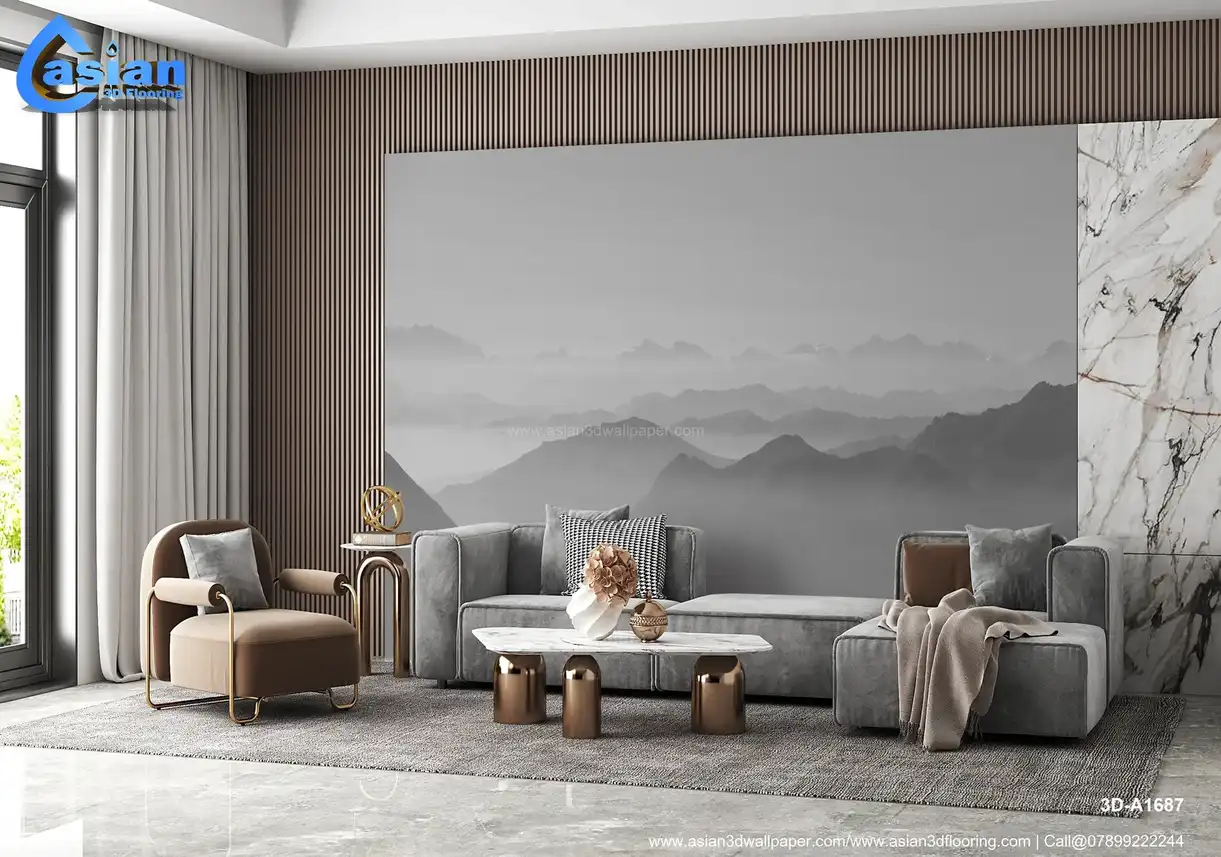 Black and White Misty Mountain Range Wallpaper||3D-A1687