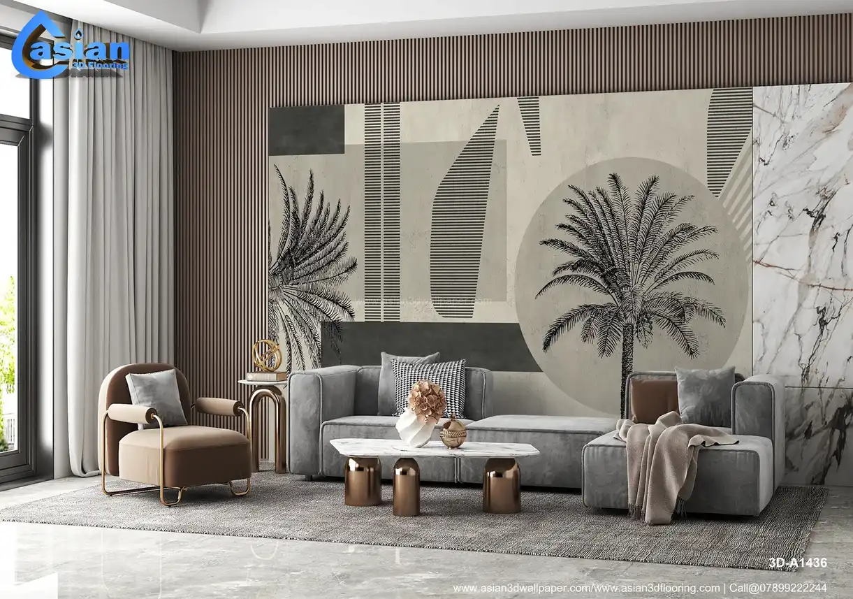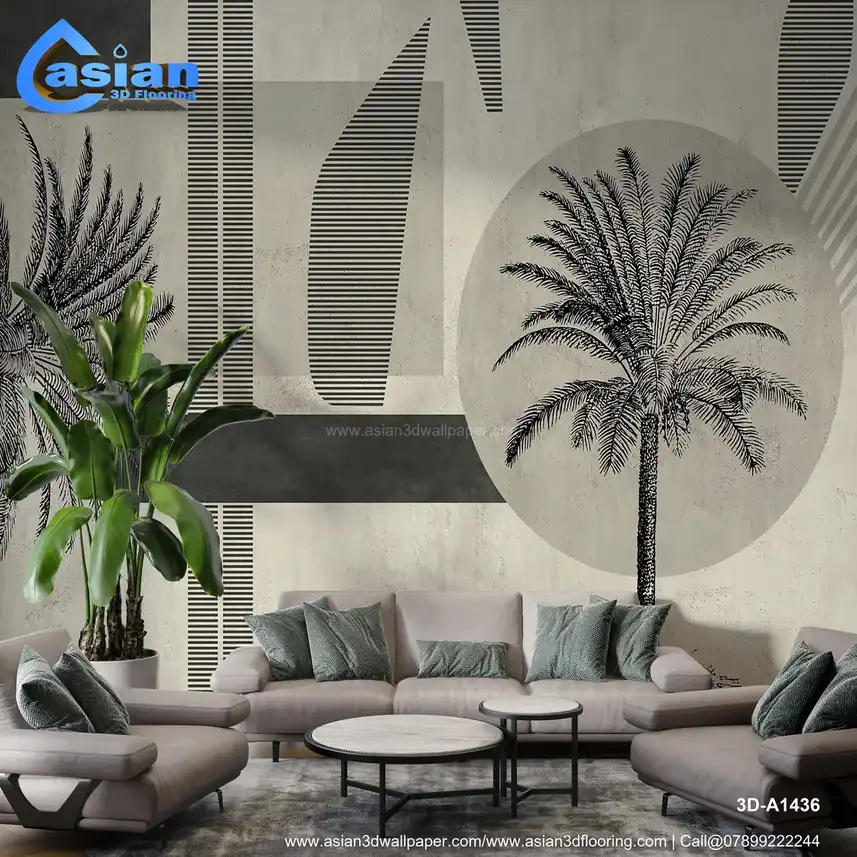 Elevate your interior with this striking black and white abstract wall mural, featuring intricate palm tree illustrations and geometric patterns. The design balances natural elements with modern abstraction, making it a perfect fit for contemporary or minimalist home decor. Ideal for living rooms, offices, or dining areas, this mural adds a sophisticated touch while maintaining a calm, serene atmosphere. A versatile piece for modern, stylish interiors. Benefits:- Offers a chic, modern aesthetic that blends nature with abstract art, ideal for creating a sophisticated yet calming atmosphere in any room.