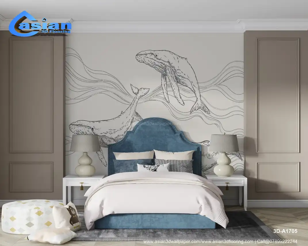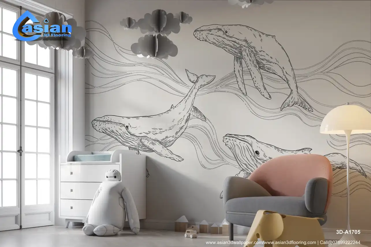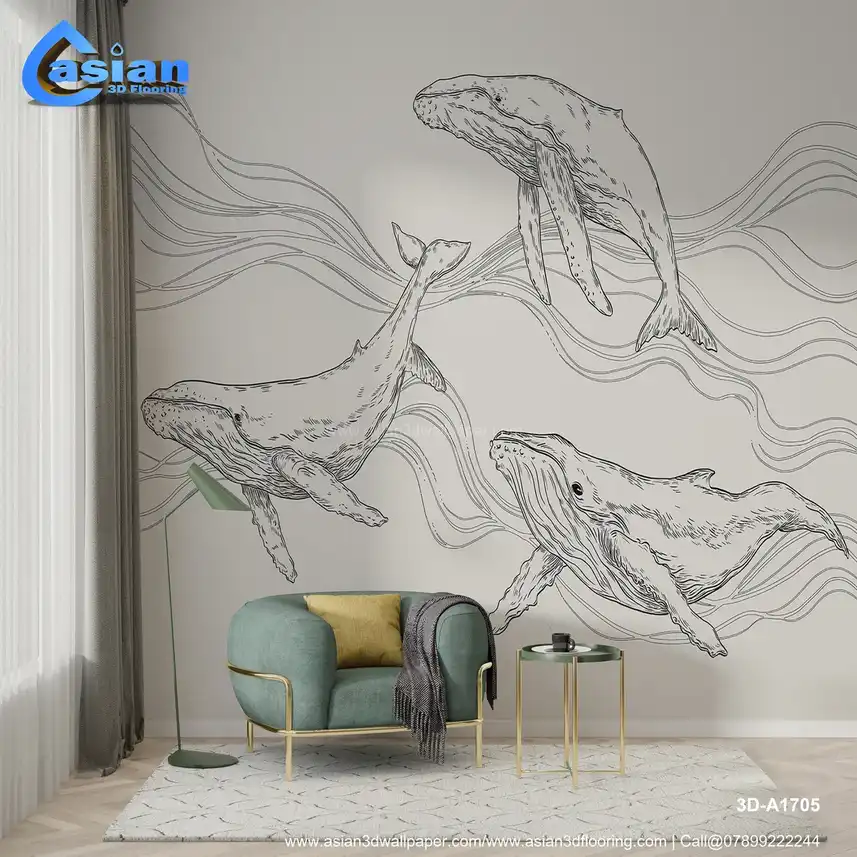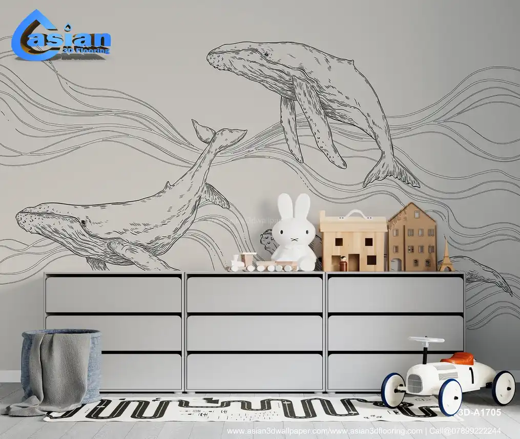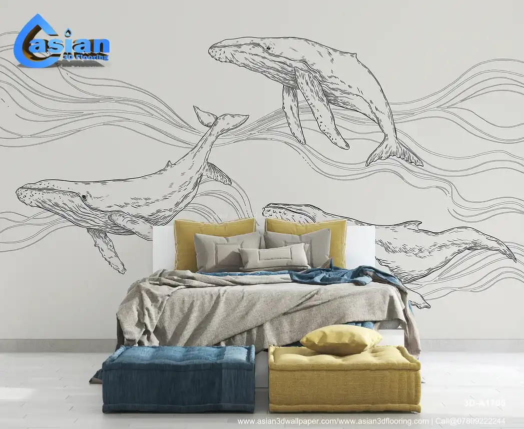 This black and white whale design features intricately drawn whales swimming through flowing waves, creating a clean, minimalist vibe that complements any modern d?cor. Benefits:- A minimalist, black-and-white whale design with fluid lines to create a peaceful and artistic atmosphere in your space.