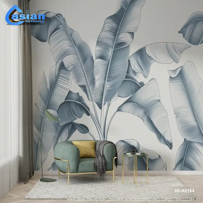 Blue-Gray Banana Leaves - Modern Botanical Illustration||3D-A2164
