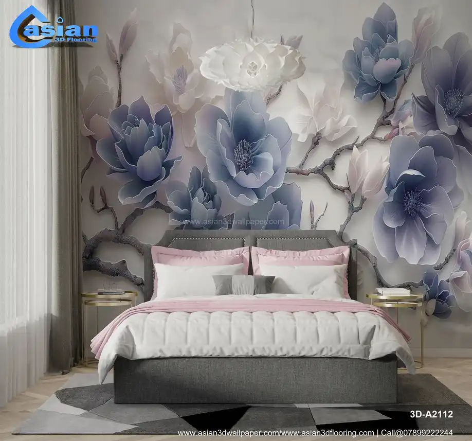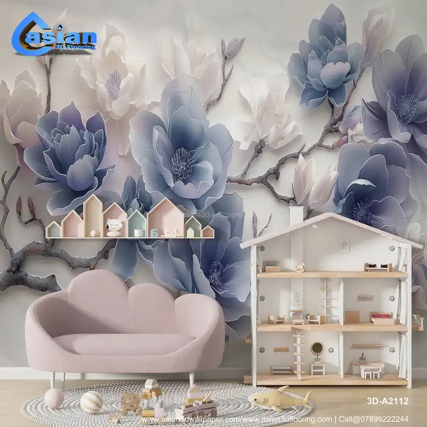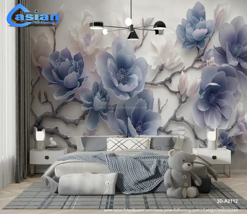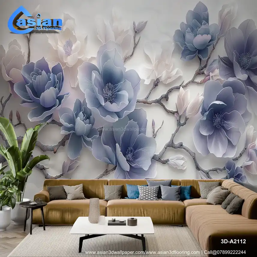 This elegant image showcases stylized magnolia flowers with a distinct three-dimensional, sculpted, or embossed effect. The flowers are rendered in shades of blue and white, creating a cool, serene, and sophisticated color palette. The background is subtle and light, further emphasizing the depth and texture of the floral design. The overall impression is one of elegance, tranquility, and natural beauty. This design evokes a sense of spring, freshness, and sophisticated style. Ideal for creating a calming and luxurious atmosphere in living rooms, bedrooms, spas, or as a serene desktop or phone background. High-resolution image available for download. Benefits:- Creates a calming and luxurious atmosphere with a touch of natural elegance and sophisticated style. The three-dimensional effect and cool color palette make it visually appealing and versatile. High-resolution image suitable for various applications. Free download available.