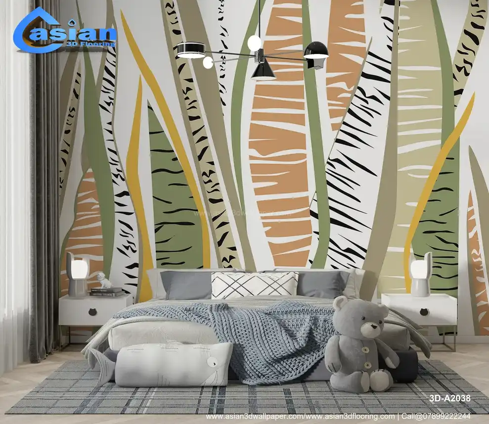 This striking wallpaper features bold striped leaves in yellow, green, and earthy tones, creating a dynamic and modern design perfect for adding character to any room. Benefits:- A vibrant addition to any modern space, this wallpaper features bold stripes in yellow and earthy tones, creating a statement wall.