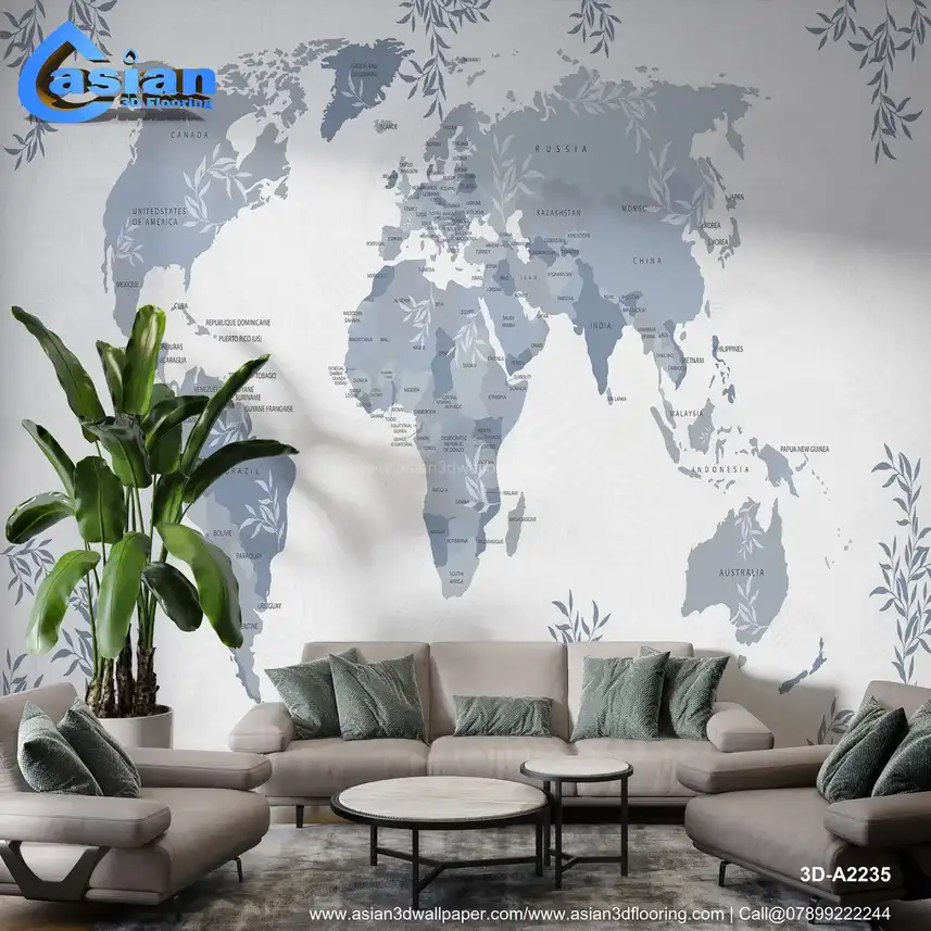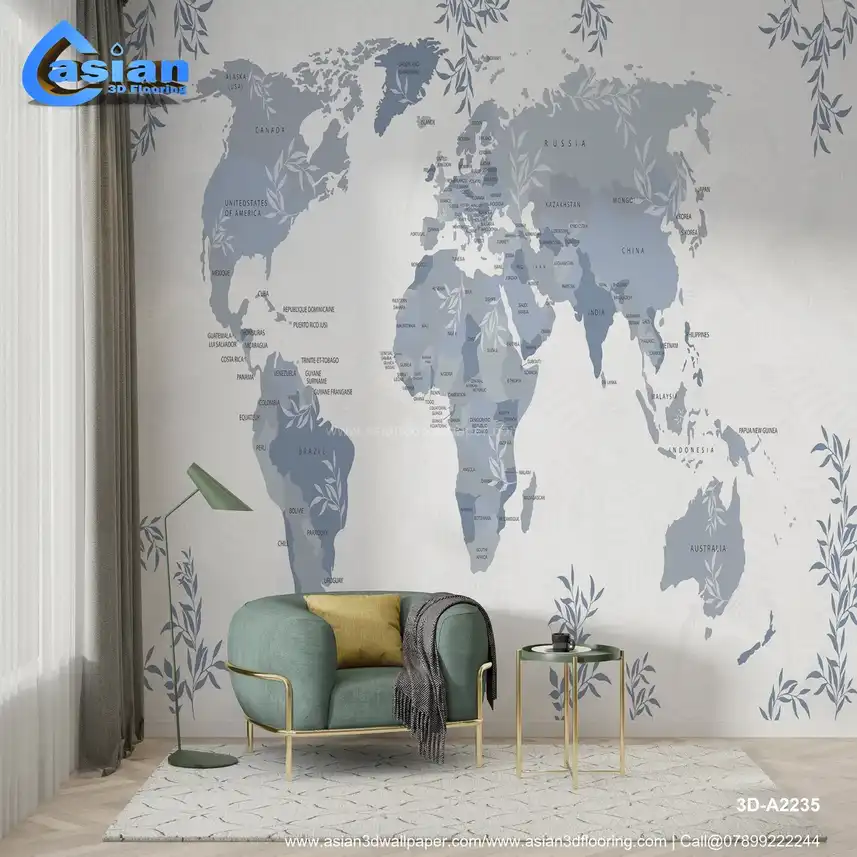Explore the world in style with this captivating wall mural featuring a world map overlaid with subtle botanical elements in a calming blue color palette. The design includes country names, making it both decorative and educational. Perfect for living rooms, offices, bedrooms, or any space where you want to add a touch of wanderlust, tranquility, and natural beauty. Made with high-quality materials for a lasting impression. Set sail for adventure with our unique world map wall murals in Bangalore, Vijayanagar, Majestic! Benefits:- Adds a touch of wanderlust, sophistication, tranquility, and natural beauty to your space. Features a world map with botanical elements and country names. Calming blue color palette creates a serene and inviting atmosphere. Made with high-quality materials. Sparks conversation and inspires a sense of adventure.