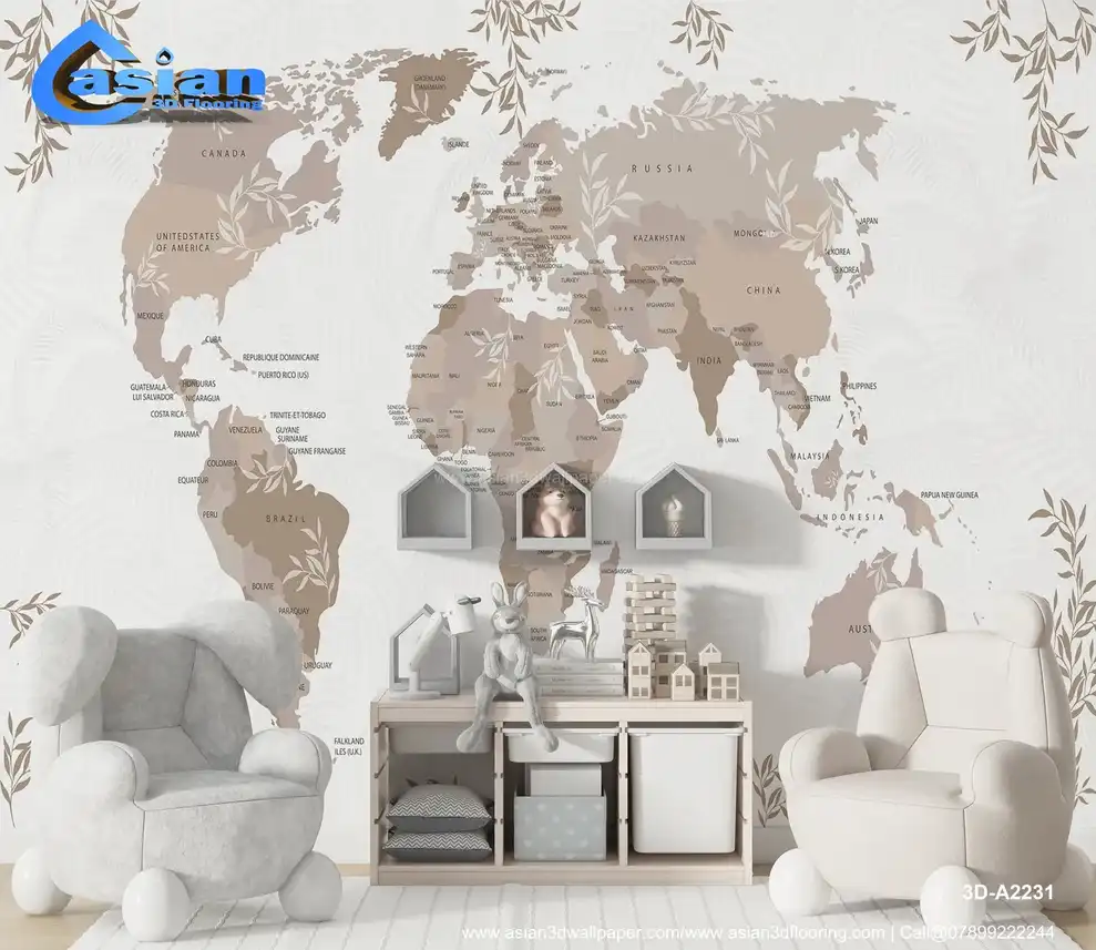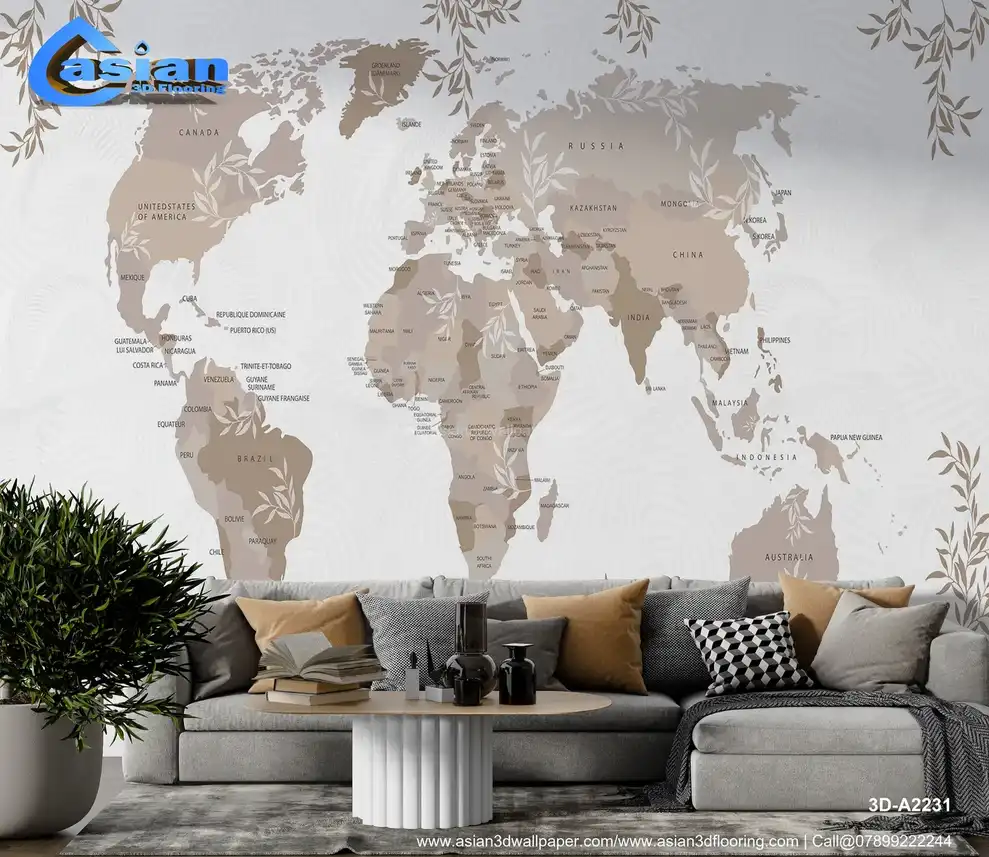 Explore the world in style with this captivating wall mural featuring a world map overlaid with subtle botanical elements in a muted color palette. The design includes country names, making it both decorative and educational. Perfect for living rooms, offices, bedrooms, or any space where you want to add a touch of wanderlust and natural beauty. Made with high-quality materials for a lasting impression. Map out your next adventure with our unique world map wall murals in Bangalore, Vijayanagar, Majestic! Benefits:- Adds a touch of wanderlust, sophistication, and natural beauty to your space. Features a world map with botanical elements and country names. Muted color palette creates a calming atmosphere. Made with high-quality materials. Sparks conversation and inspires a sense of adventure.