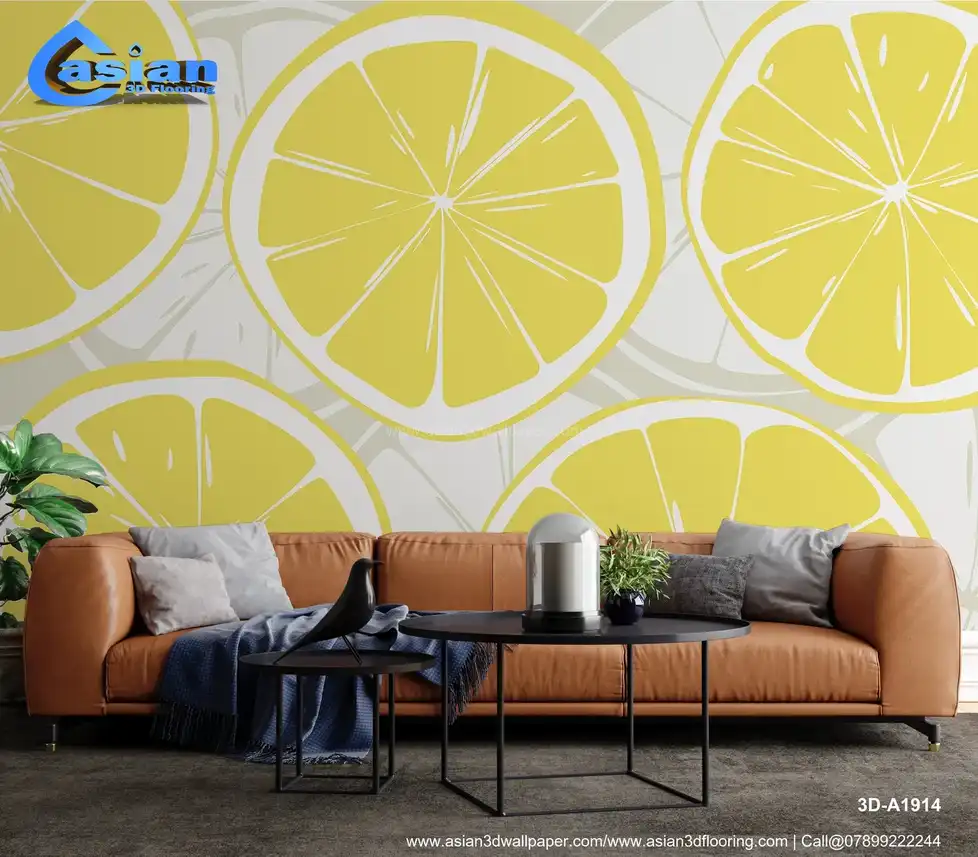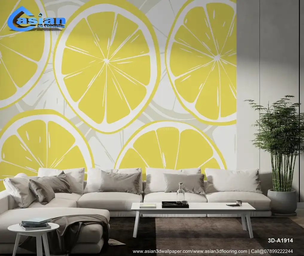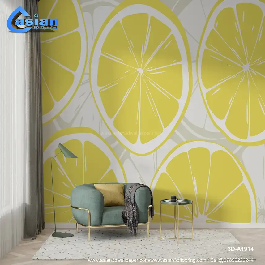 Bright Lemon Slice Wallpaper for Fresh and Lively Spaces||3D-A1914