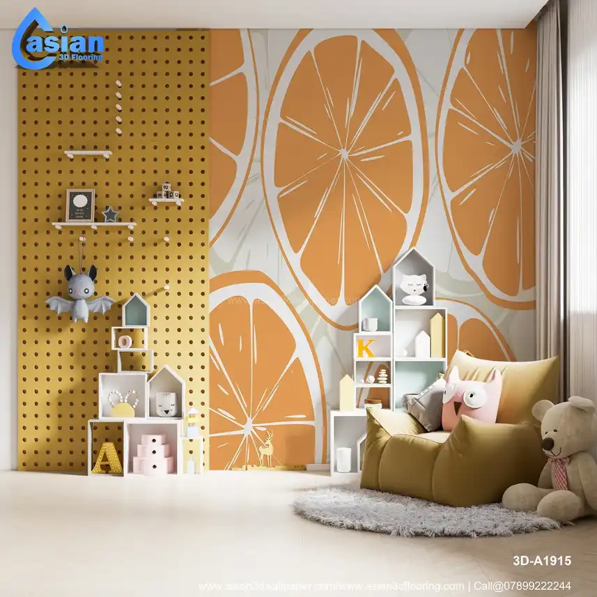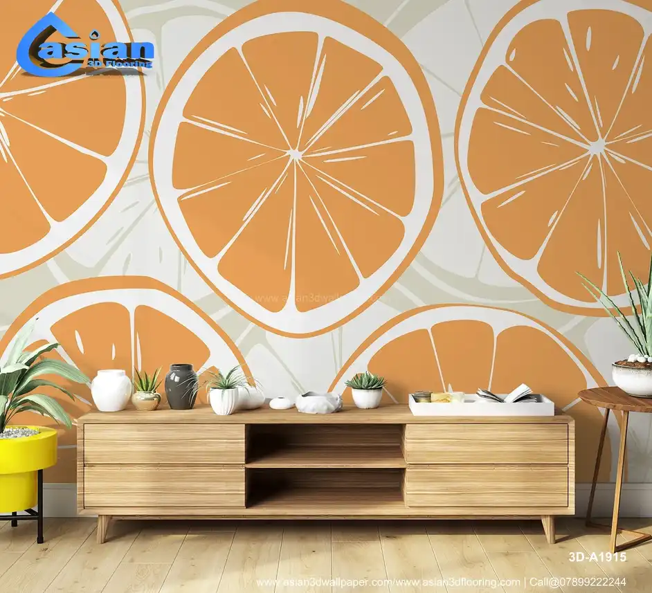 Bright Orange Citrus Slice Wallpaper for Fresh Interiors||3D-A1915