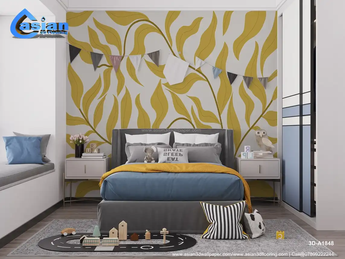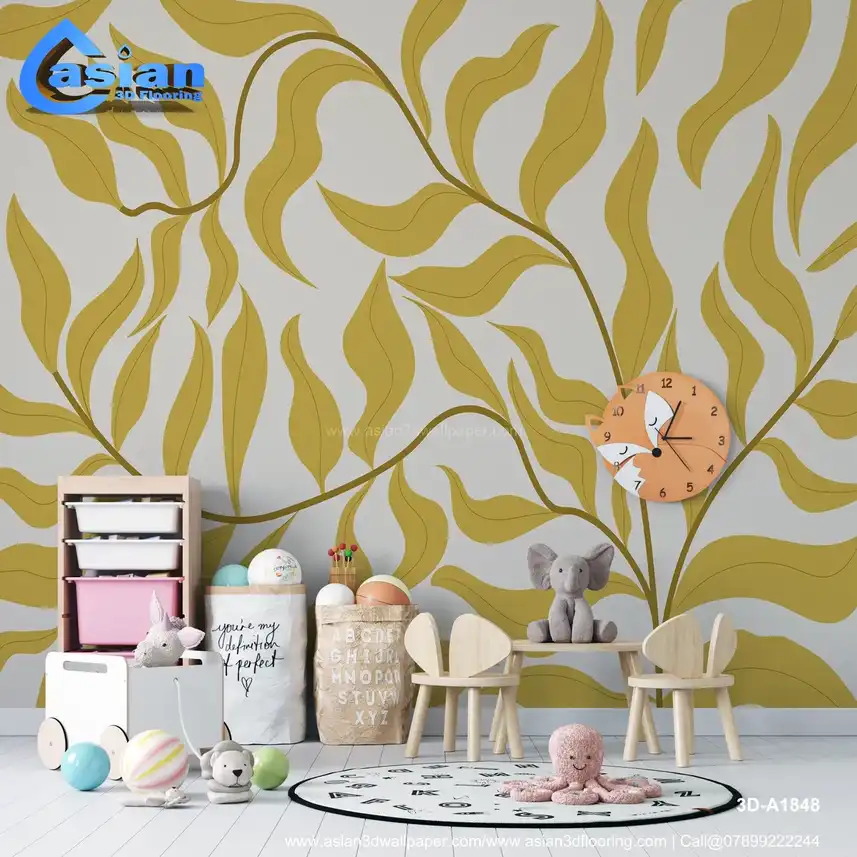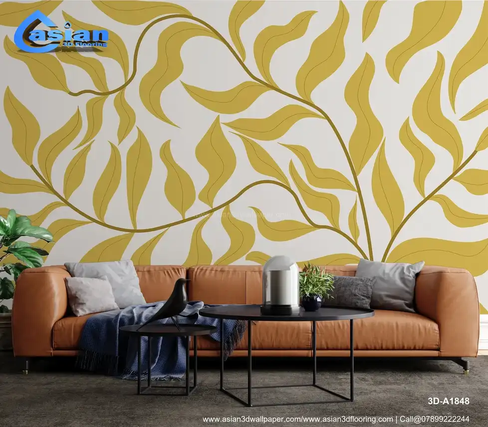 Bright Yellow Leaf Pattern Wallpaper||3D-A1848