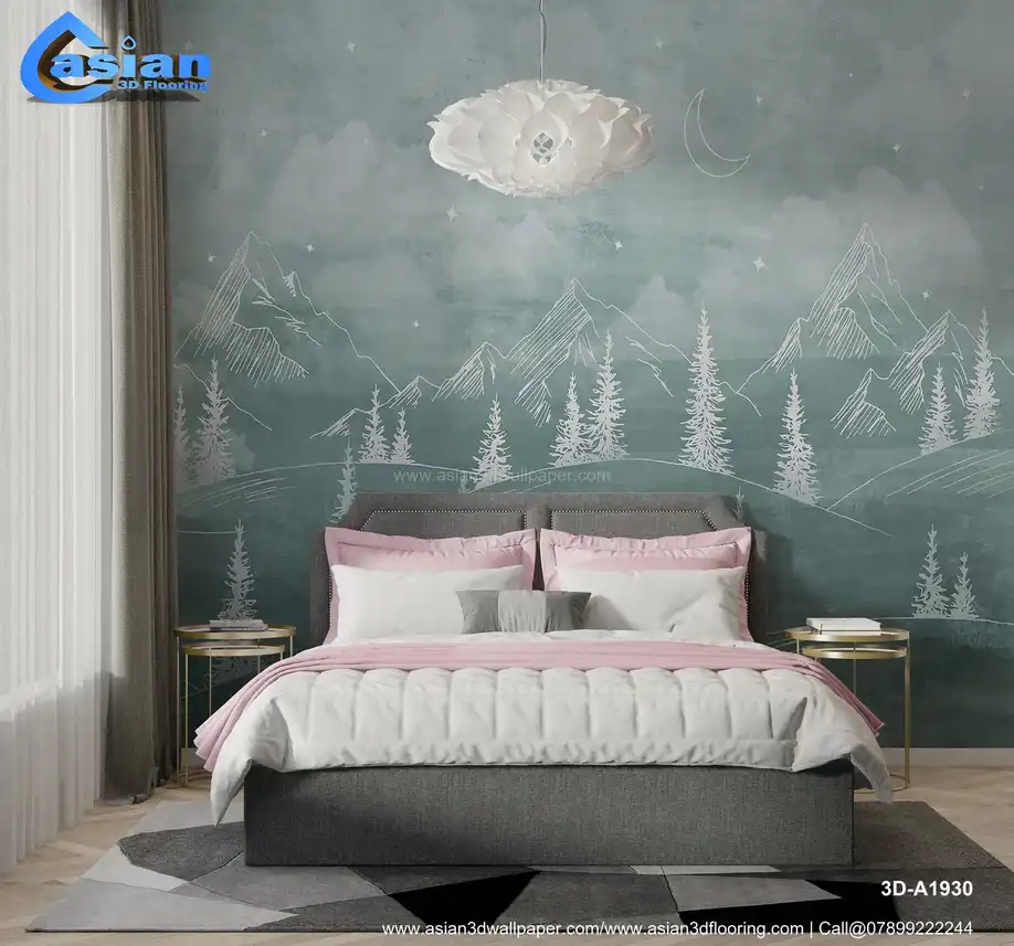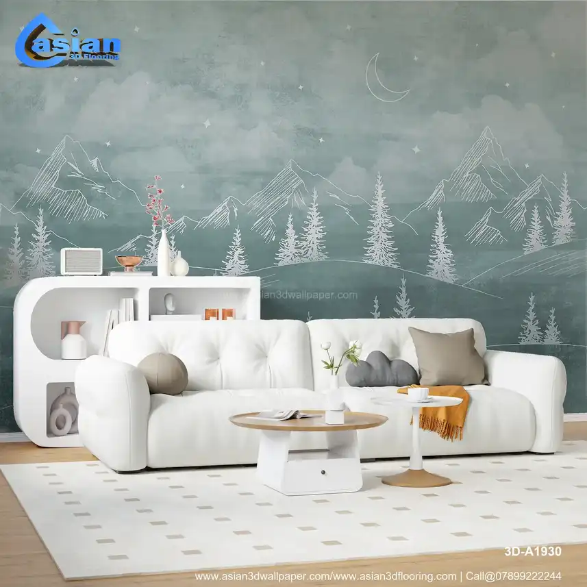 This tranquil wallpaper features a soft green landscape with mountains, pine trees, and a crescent moon, creating a serene atmosphere under a starry sky. Ideal for bedrooms, living rooms, or any space that requires a calm, nature-inspired touch. Benefits:- Ideal for creating a calming, nature-inspired atmosphere in any room, especially bedrooms or living spaces seeking a peaceful design.