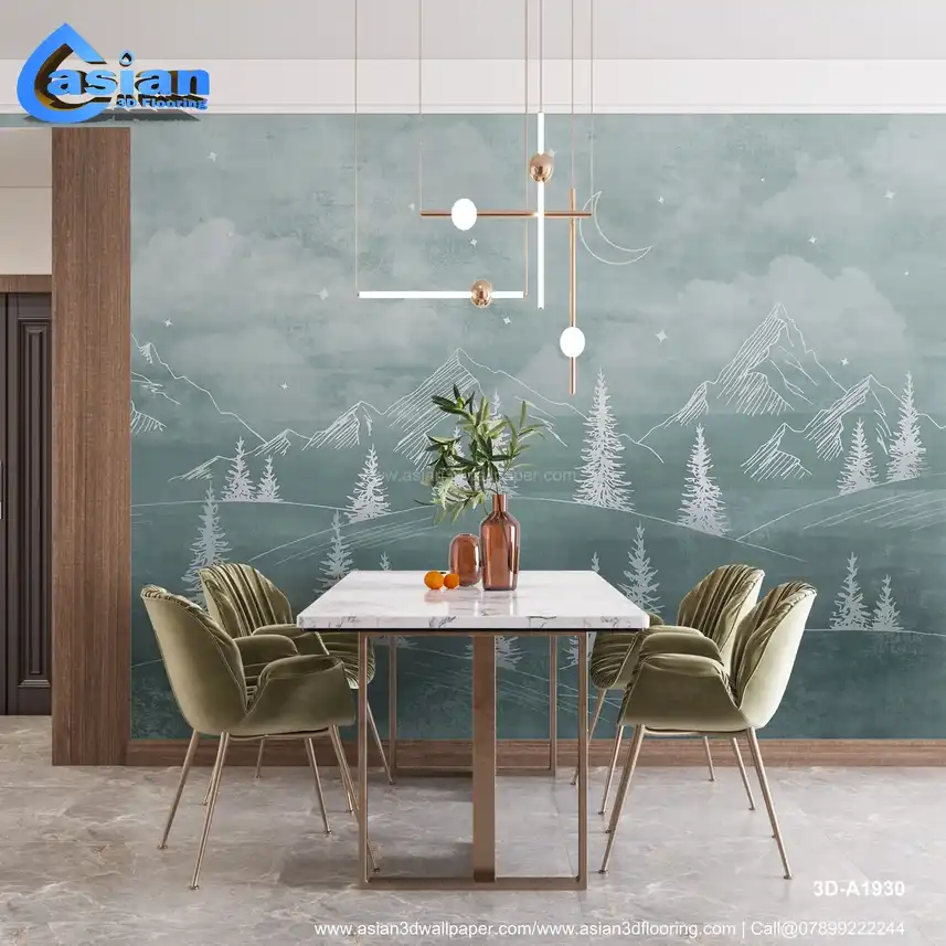 Calming Green Mountain and Pine Tree Wallpaper for Relaxing Interiors||3D-A1930