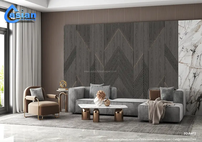 Elevate your interior with this stylish chevron-patterned wood-textured wallpaper. Featuring sleek geometric lines in a rich grey wood finish, this design adds depth and sophistication to any space. Ideal for modern, minimalist, or industrial-themed interiors, this wallpaper brings a refined, yet bold, aesthetic to your walls. Product Benefits :- Provides a modern, textured look to any room, perfect for offices, living spaces, or accent walls.