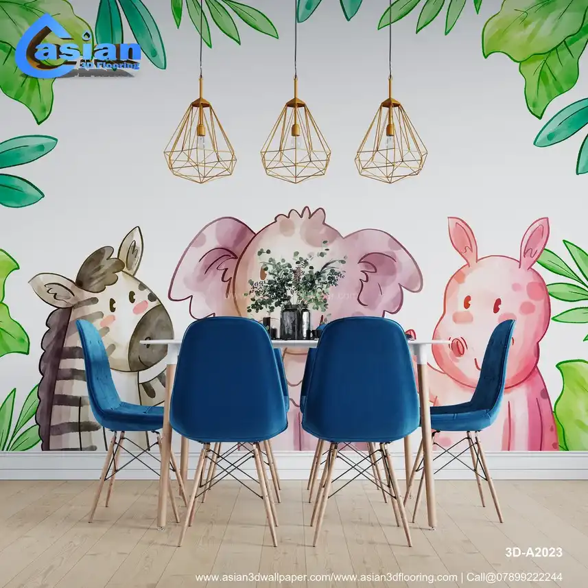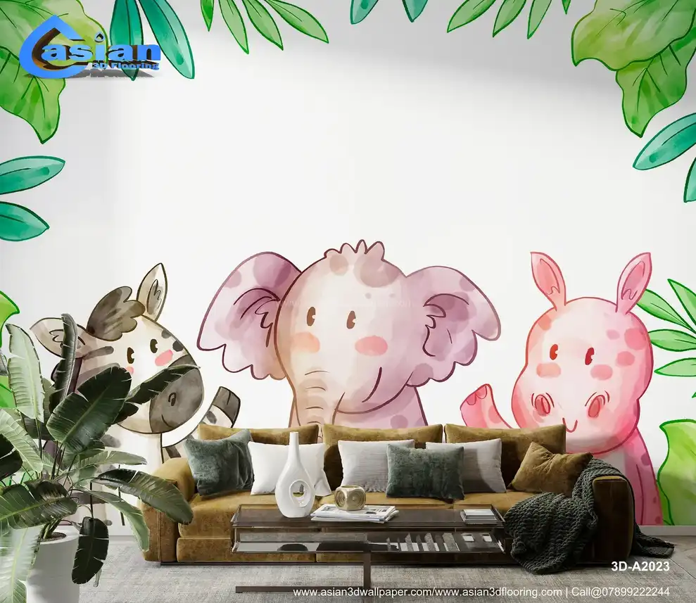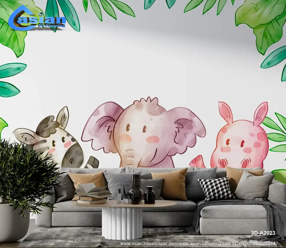Cute Cartoon Animals Wallpaper with Zebra, Elephant, and Pig||3D-A2023