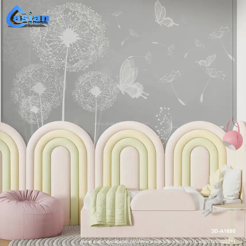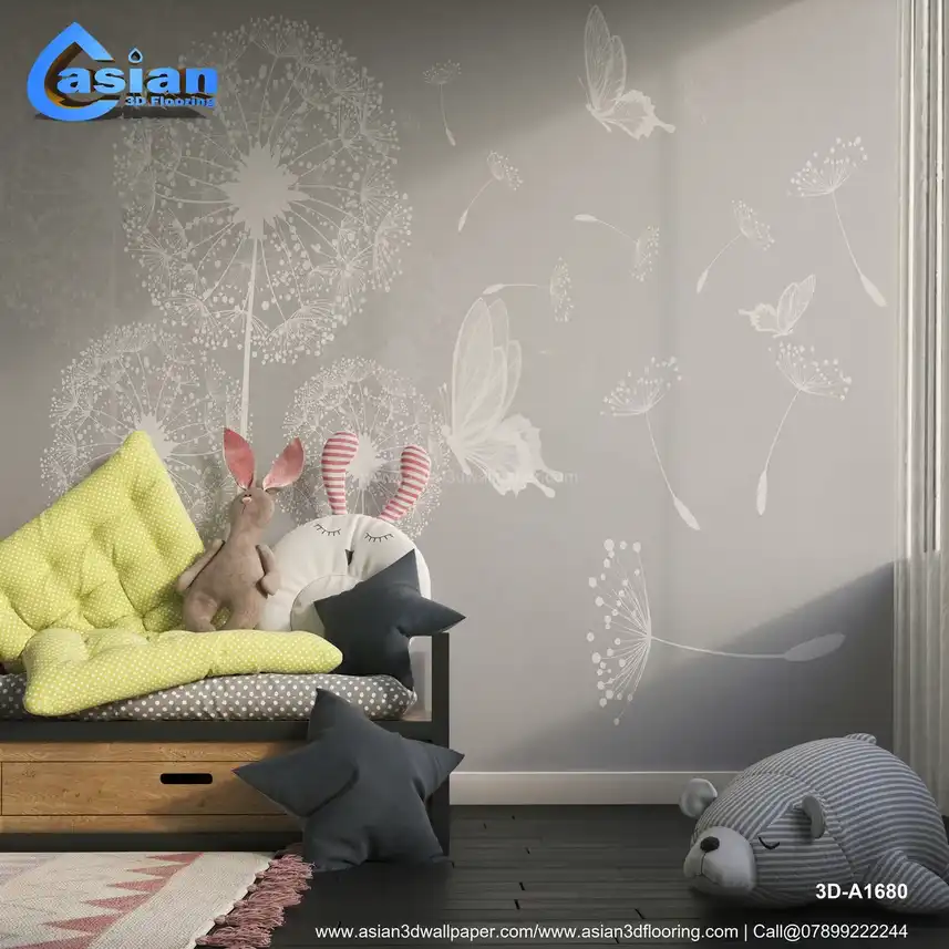 A soft, calming wallpaper featuring dandelions and butterflies, presented in subtle grey tones for a peaceful, minimalist effect. Ideal for modern and serene spaces. Benefits:- Creates a calming and minimalist atmosphere, perfect for any room in need of soft, nature-inspired decor.