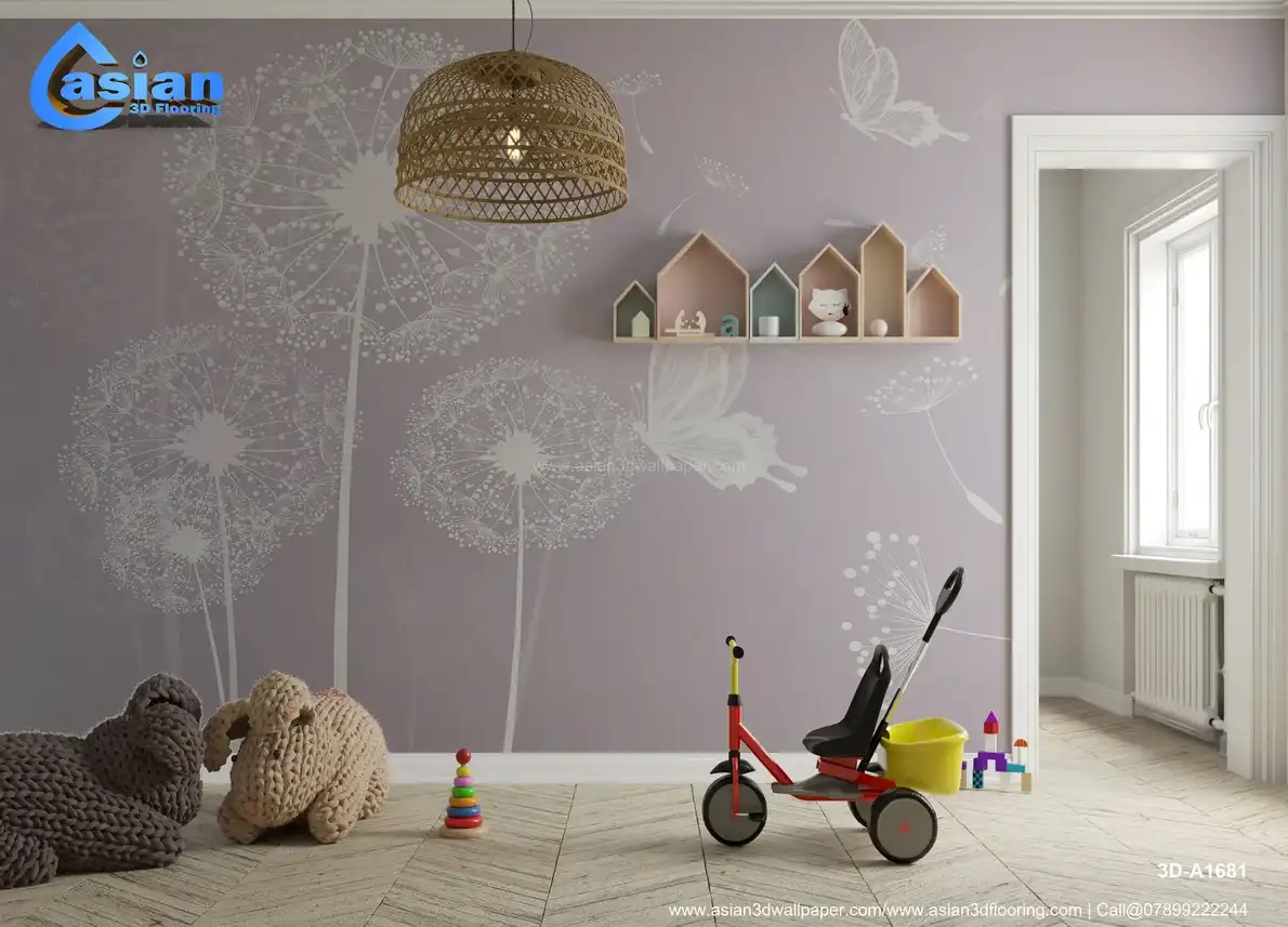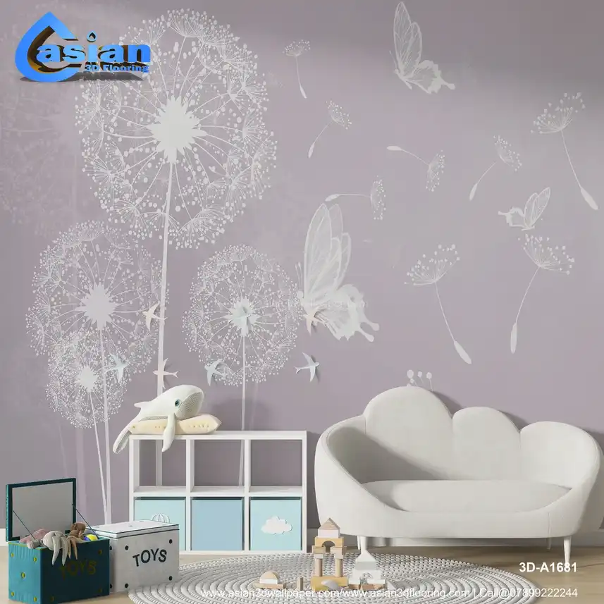 A serene wallpaper design featuring dandelions and butterflies in light purple tones, ideal for creating a soft and peaceful atmosphere in your home. Benefits:- Creates a gentle, calming atmosphere, perfect for any room that needs a touch of elegance and nature-inspired decor.