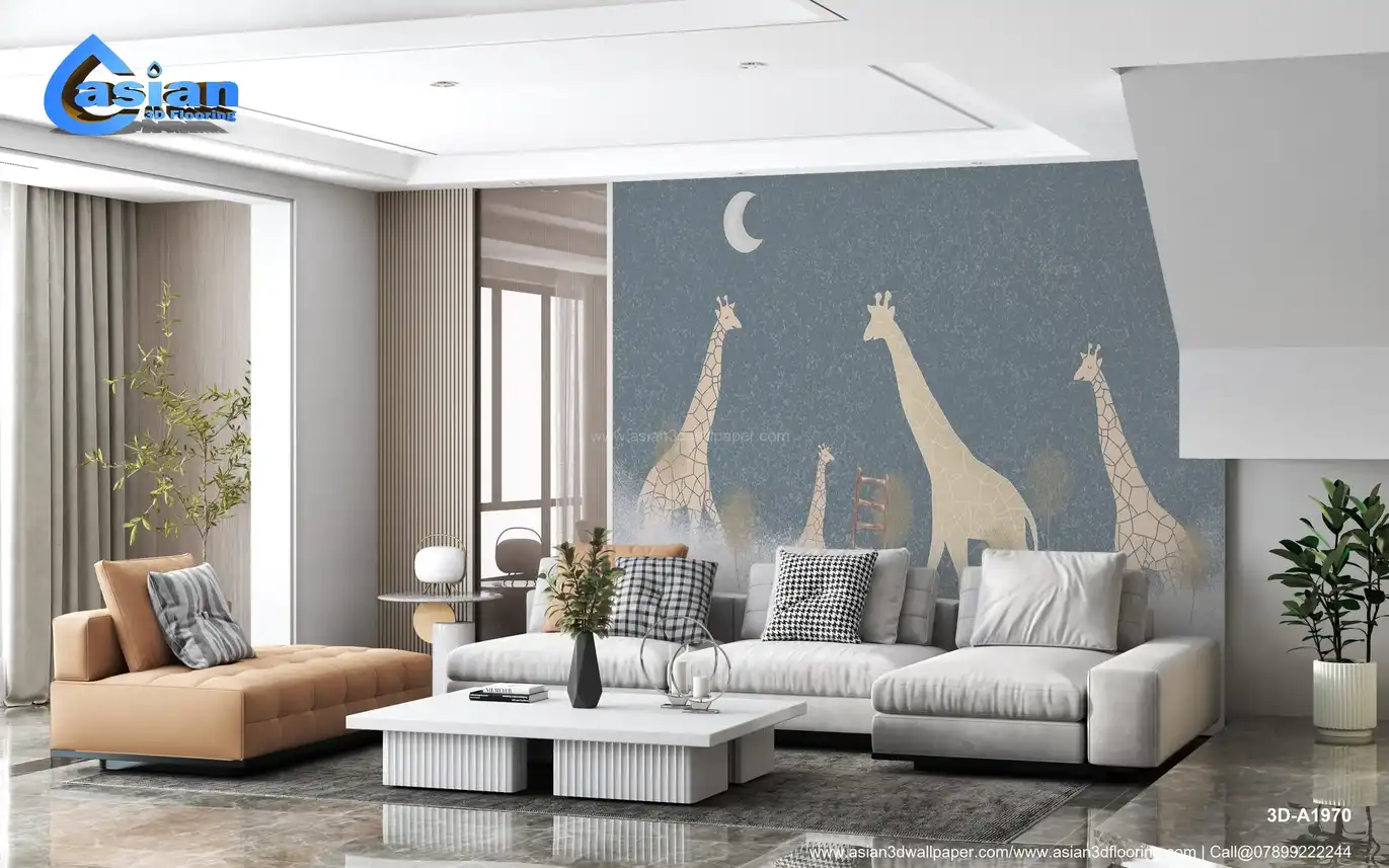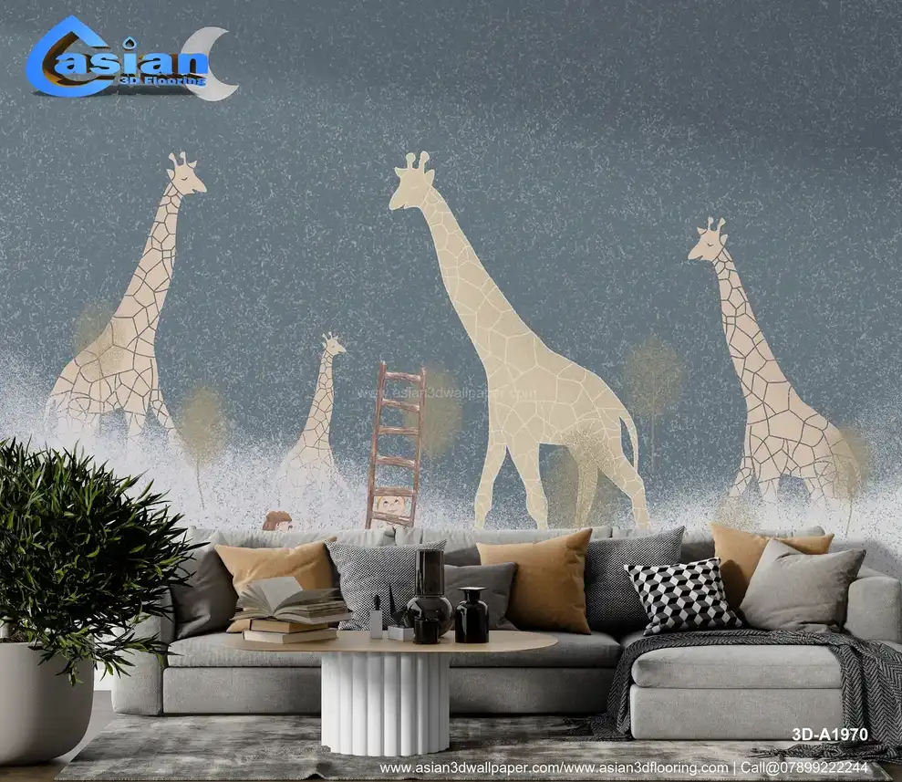 Dreamy Giraffes with Ladder Wallpaper for Kids' Rooms||3D-A1970