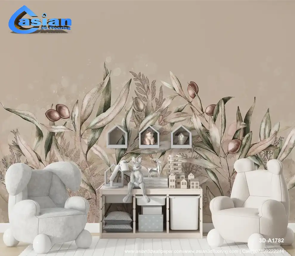 This wallpaper features an earthy olive branch design with muted greens and warm beige tones, creating a rustic and serene ambiance. Perfect for kitchens, dining rooms, and living areas to bring a touch of Mediterranean warmth and natural charm. Benefits:- Adds a rustic and warm feel; ideal for nature-themed interiors