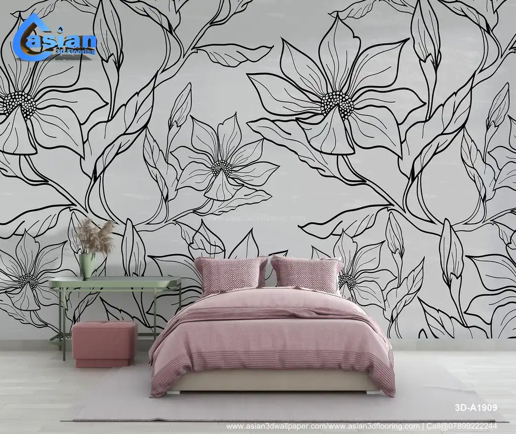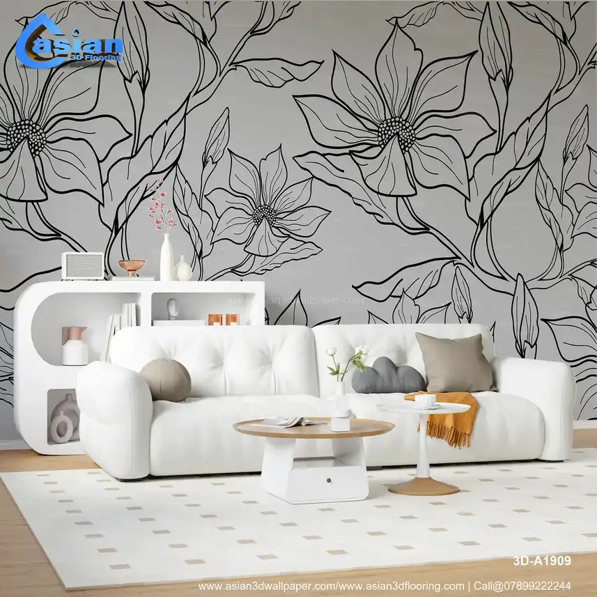 Elegant Black and White Floral Line Art Wallpaper||3D-A1909