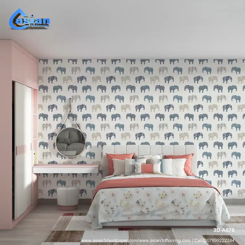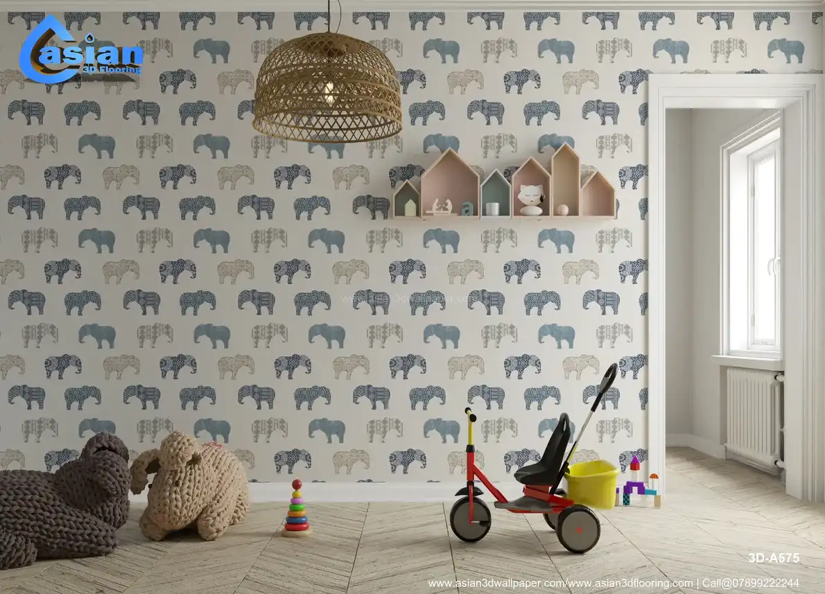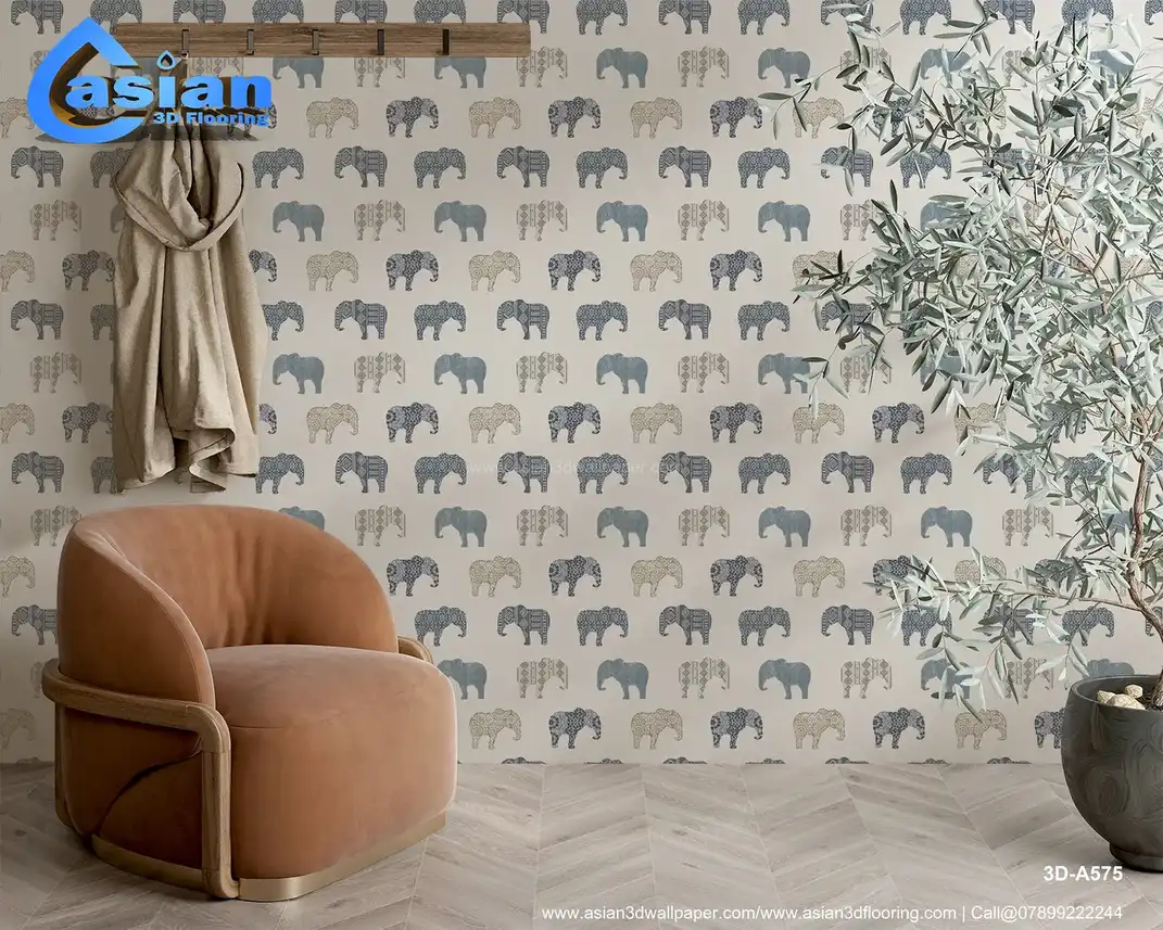 This unique wallpaper design showcases elephants adorned with intricate patterns in soothing blue, beige, and cream tones, ideal for creating a serene and stylish ambiance in any room. Perfect for bedrooms, living areas, and nurseries, this wallpaper blends subtle colors with global-inspired patterns, making it versatile for various interior styles. The calm, neutral palette and elegant design add a refined touch, promoting a peaceful atmosphere. Benefits:- Brings tranquility, elegant pattern, versatile color scheme