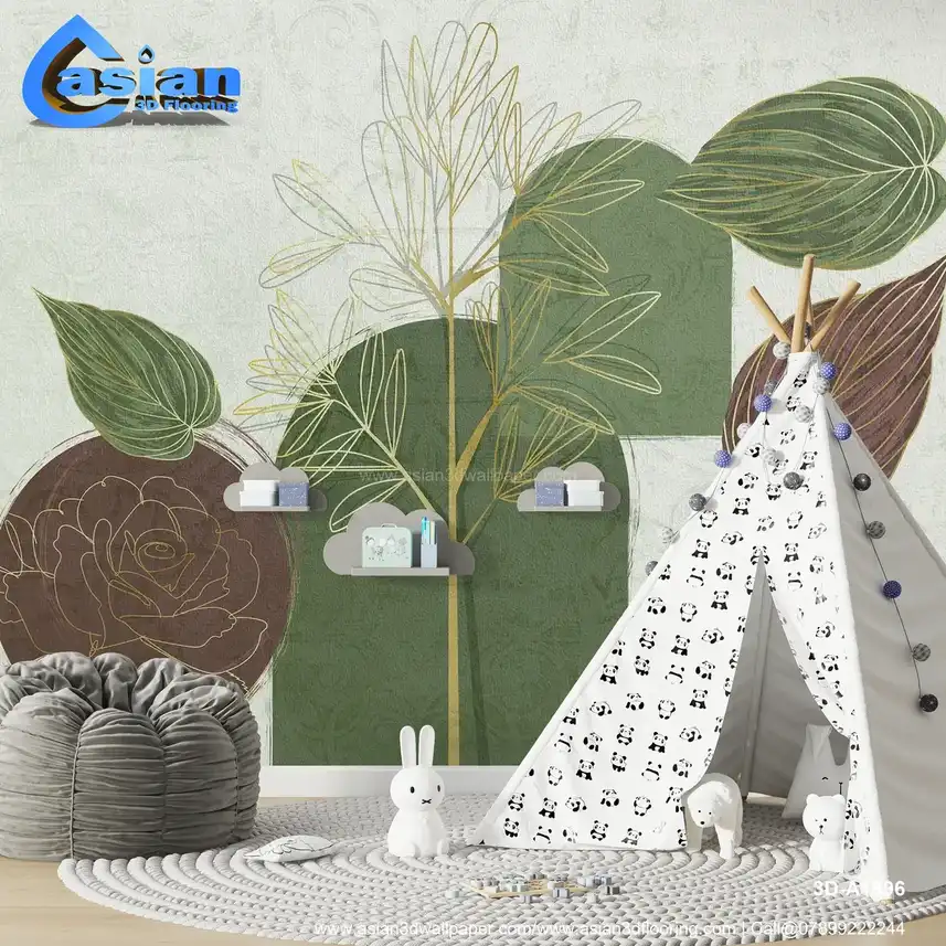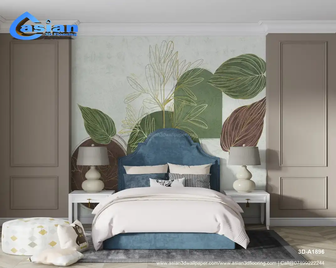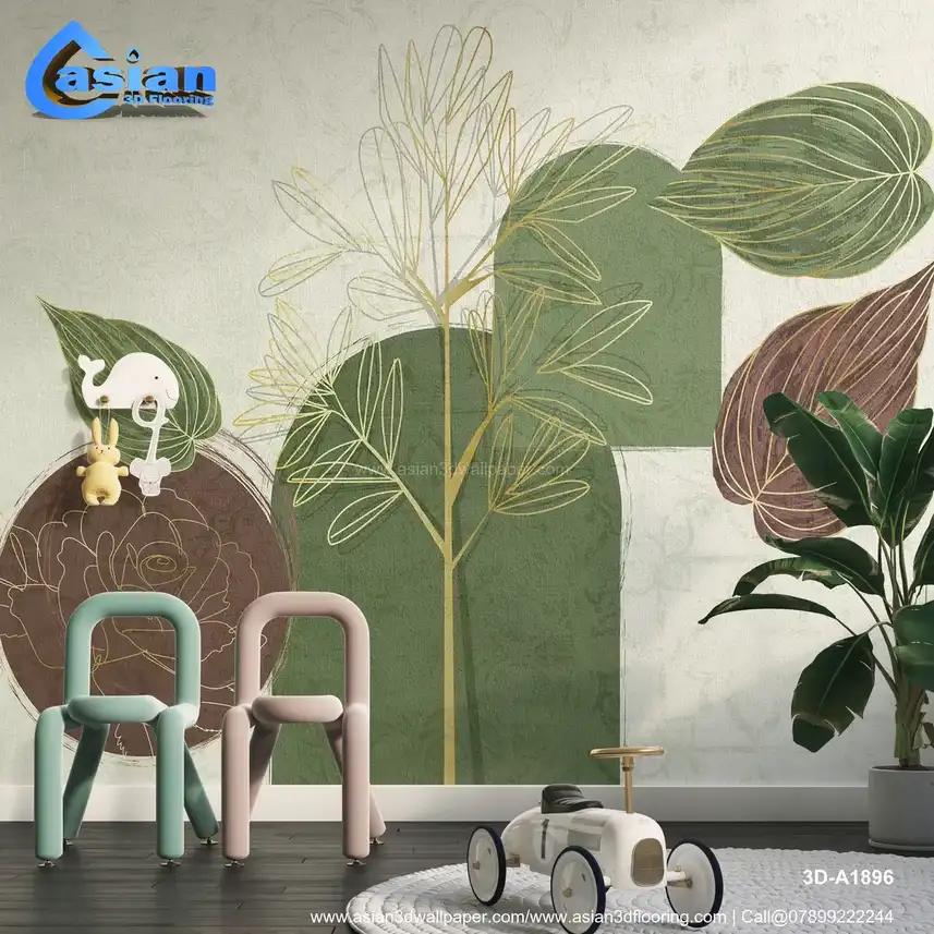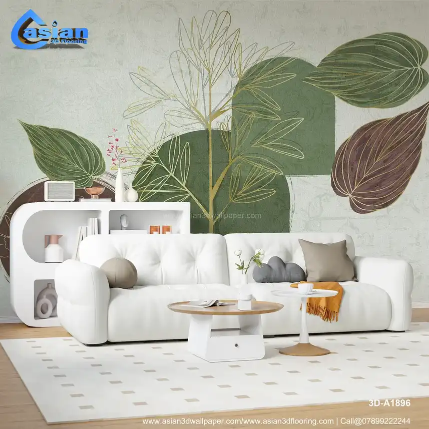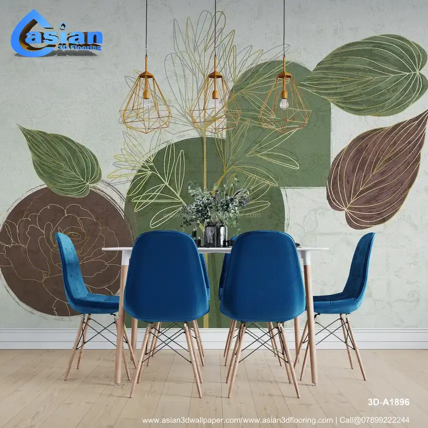 Elegant Botanical Geometric Leaf and Flower Wallpaper||3D-A1896