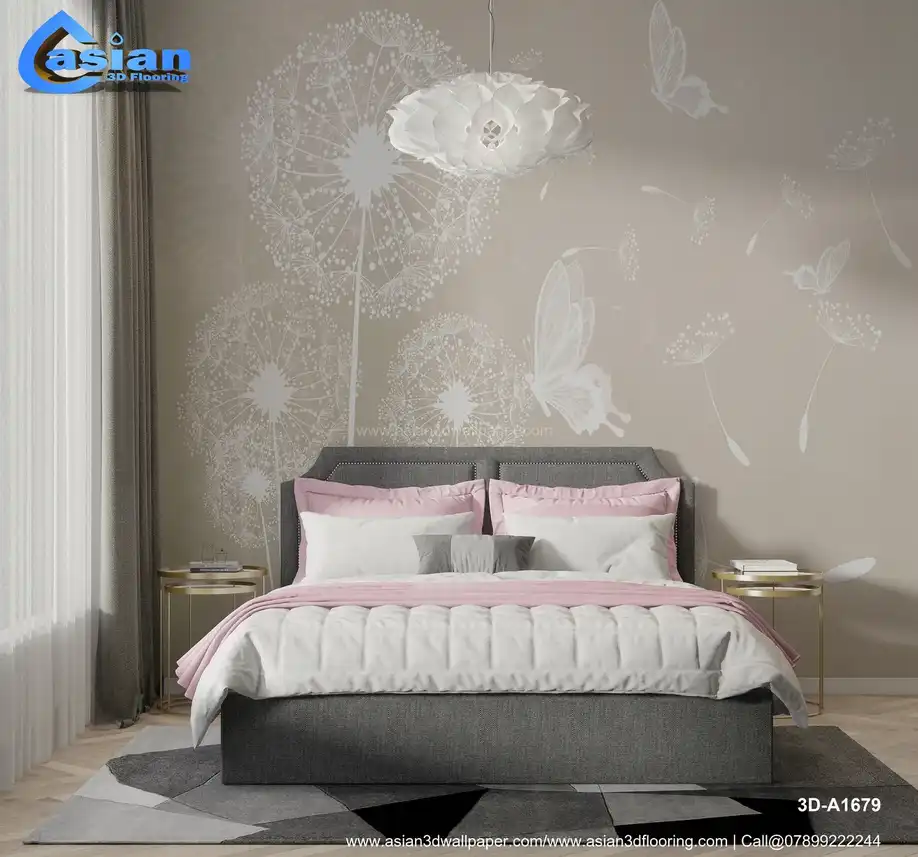 A graceful design featuring delicate dandelions and butterflies, set against a soft, neutral background, perfect for creating a calming and airy atmosphere in any room. Benefits:- Adds an elegant and natural touch to any space, featuring soothing colors and beautiful botanical motifs.