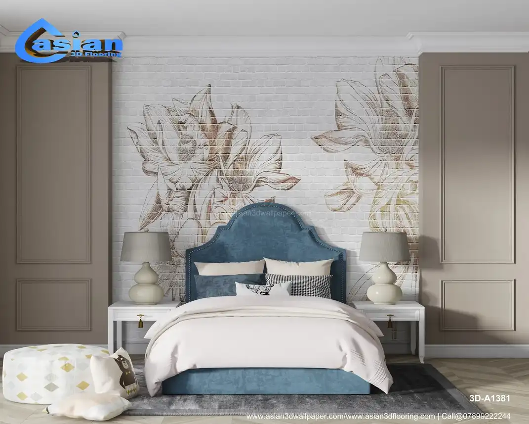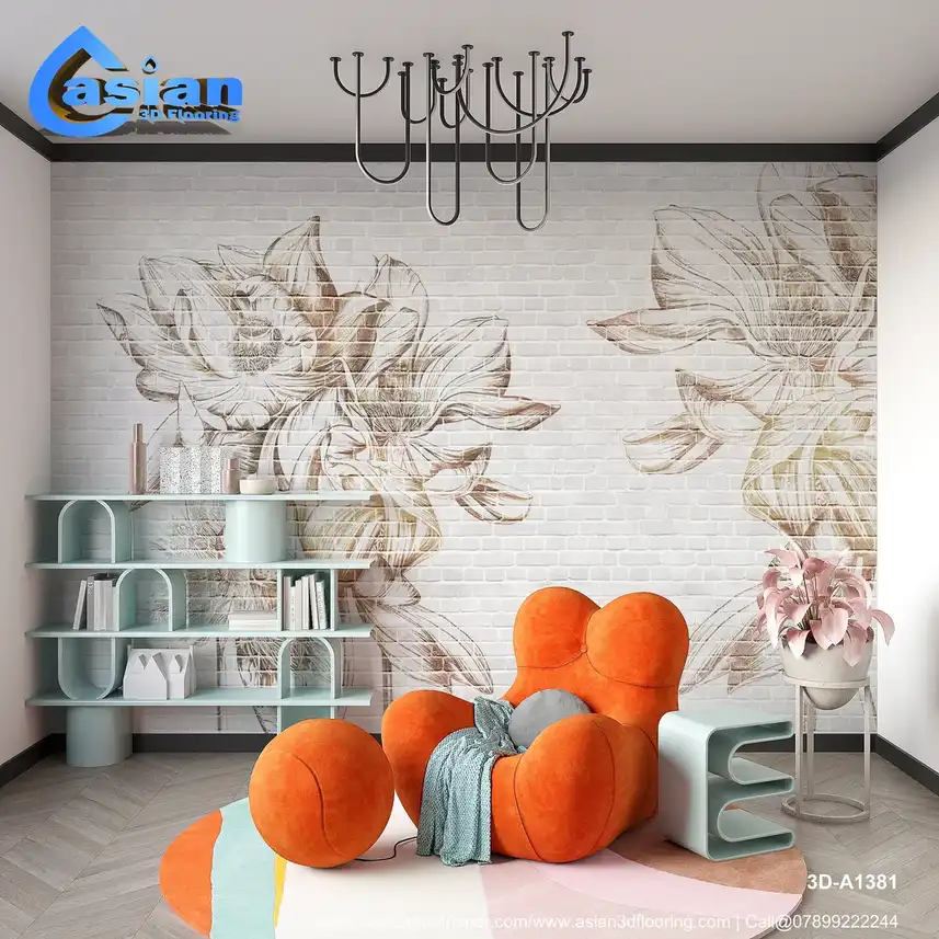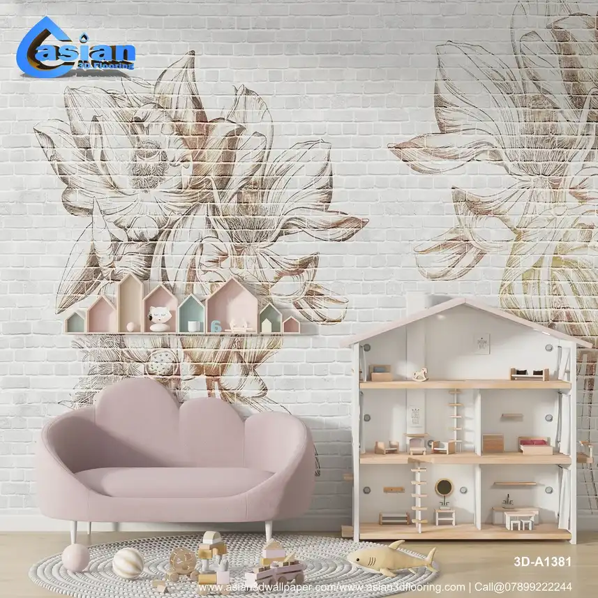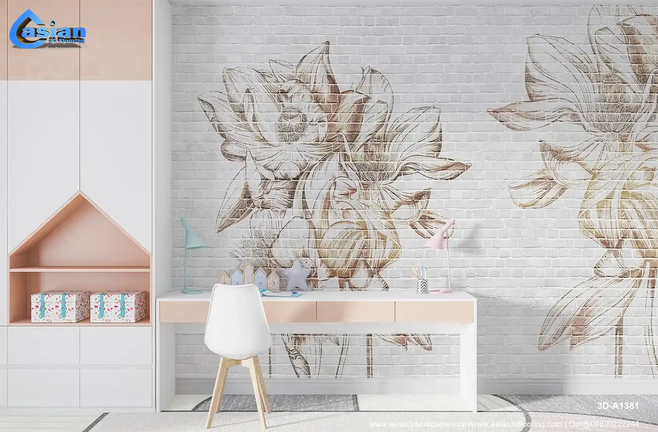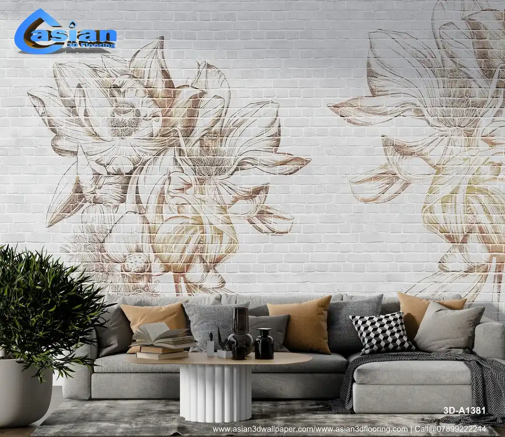 A sophisticated and artistic floral design featuring intricate flower outlines in soft shades of beige and brown on a white brick wall, creating a vintage and timeless look for any space. Benefits:- Ideal for those looking to add a touch of elegance and nature to their home with a modern yet timeless design.