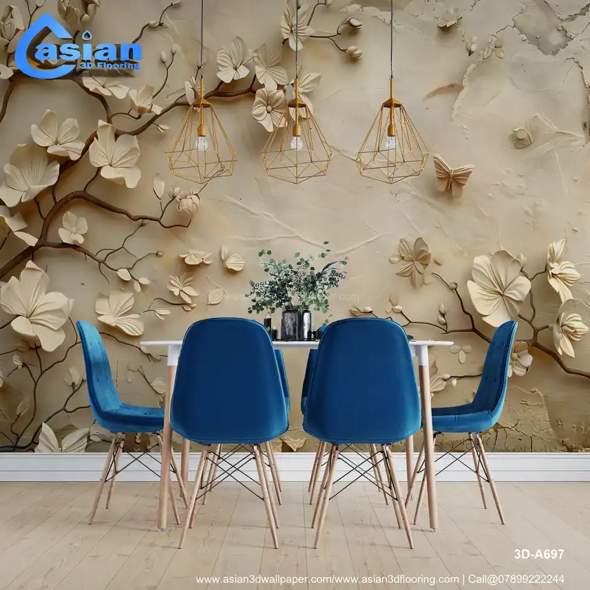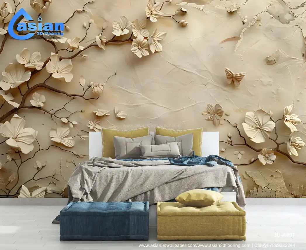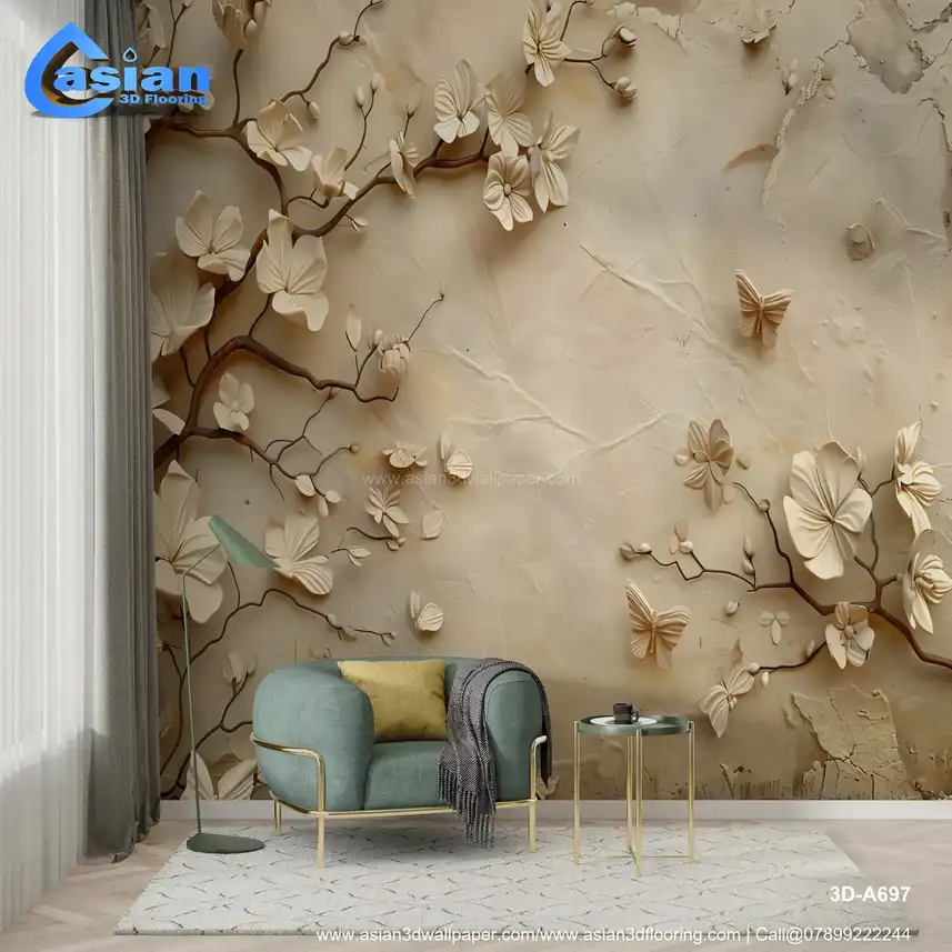 Elegant Floral and Butterfly Wallpaper||3D-A697