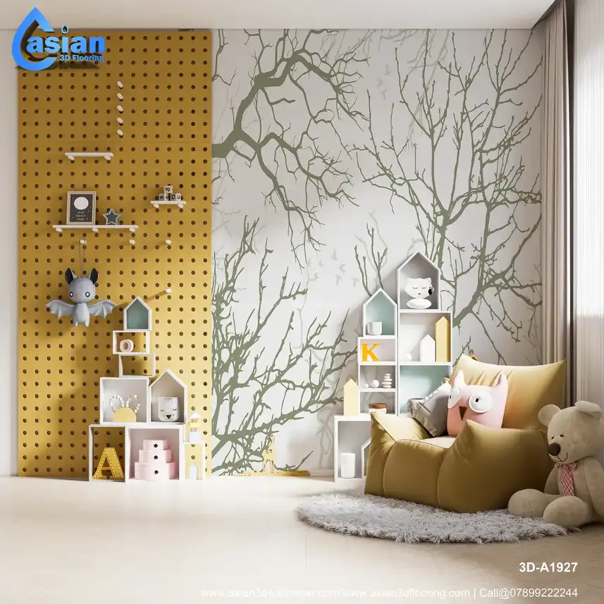 Elegant Green Tree Branches Wallpaper for Nature-Inspired Spaces||3D-A1927
