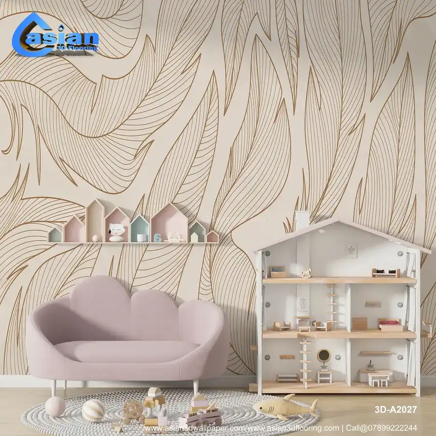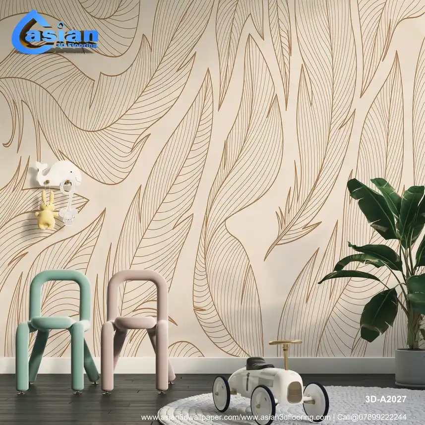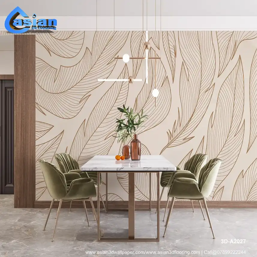 Elegant Leaf Wallpaper with Delicate Line Art Design||3D-A2027