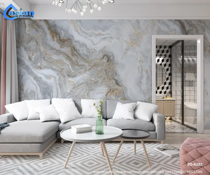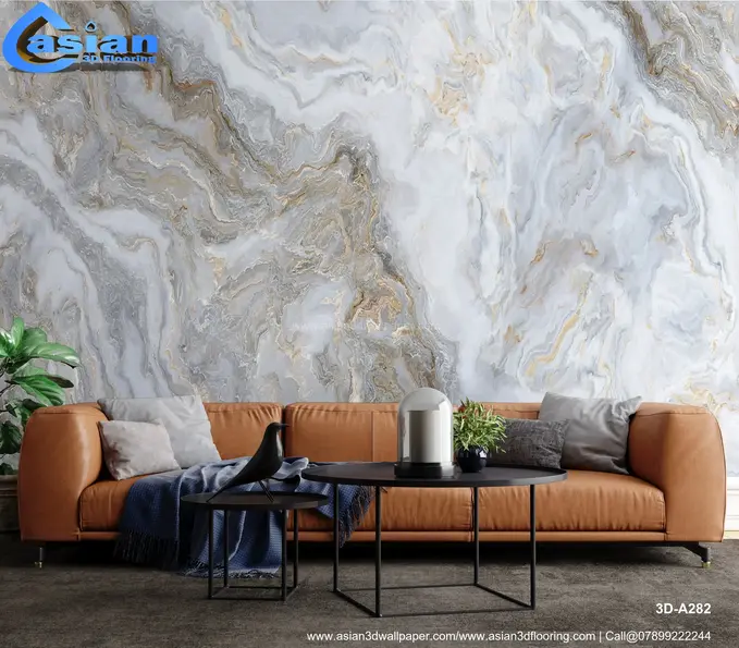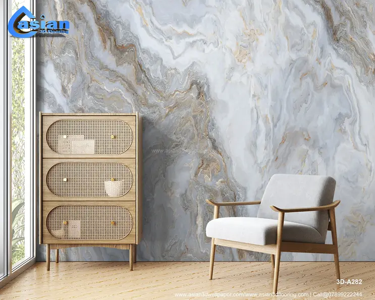 Elegant Marble Look 3D Wallpaper with Subtle Gold Veins||3D - A282