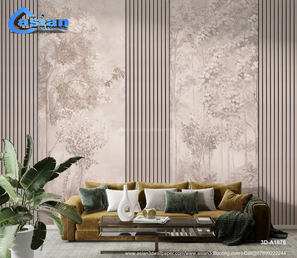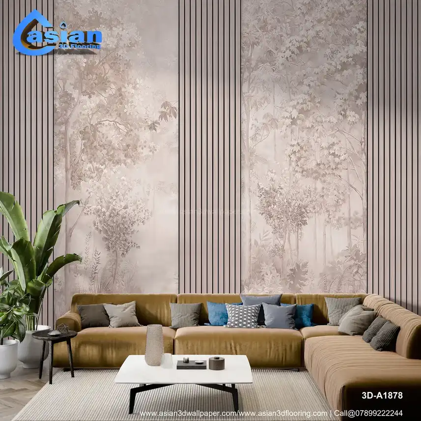 Elegant Neutral Nature Wallpaper with Vertical Stripes ? Forest Design||3D-A1878