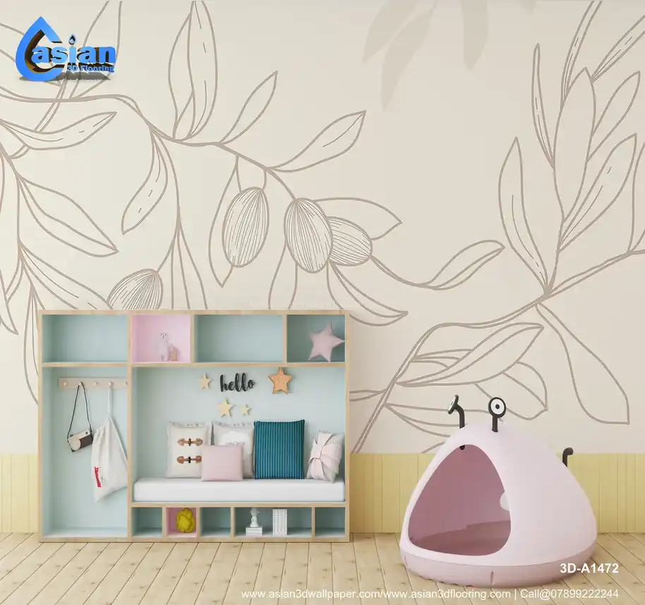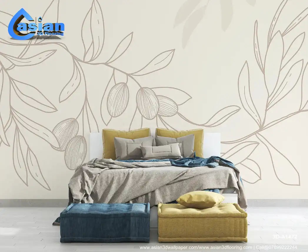 Elegant Olive Branch Line Art Wallpaper||3D-A1472