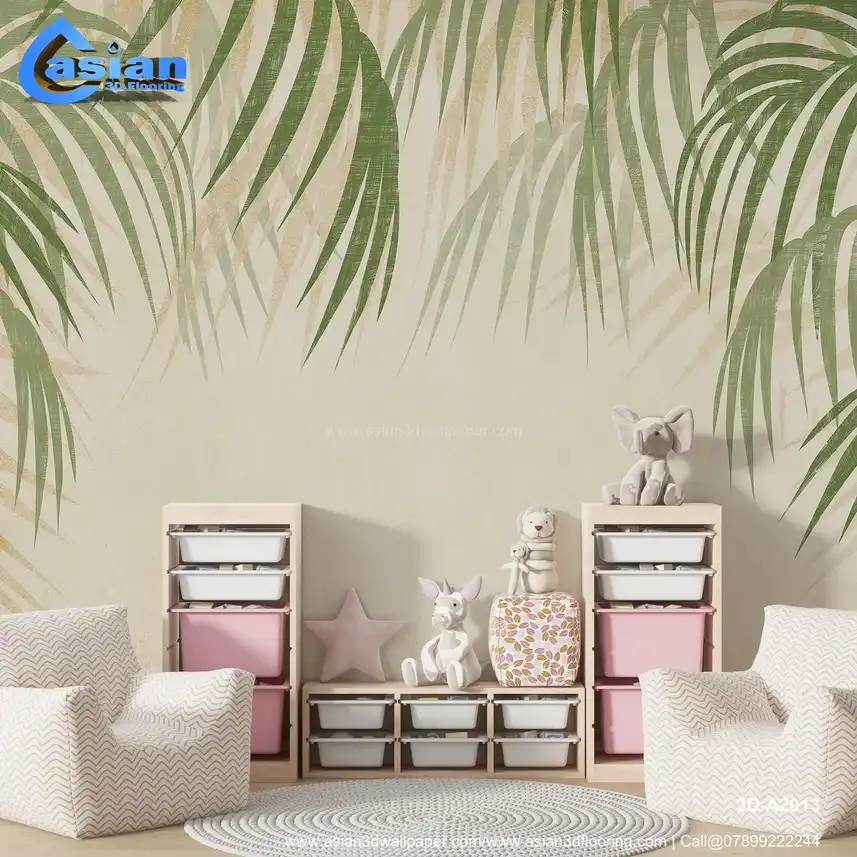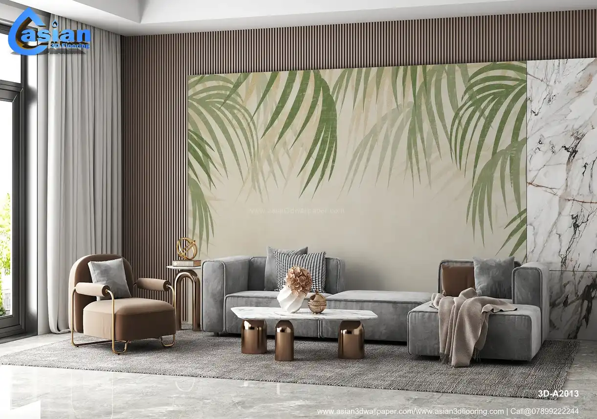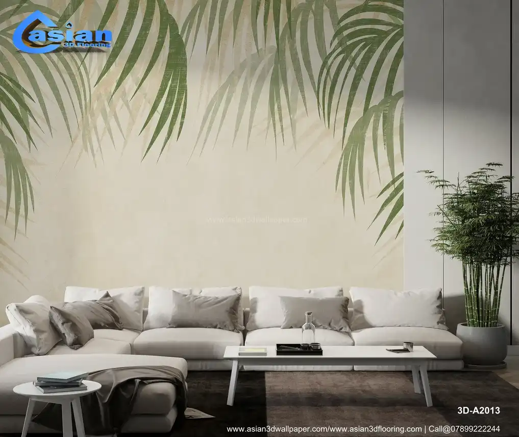 Elegant Palm Leaves Wallpaper with Soft Beige Background||3D-A2013