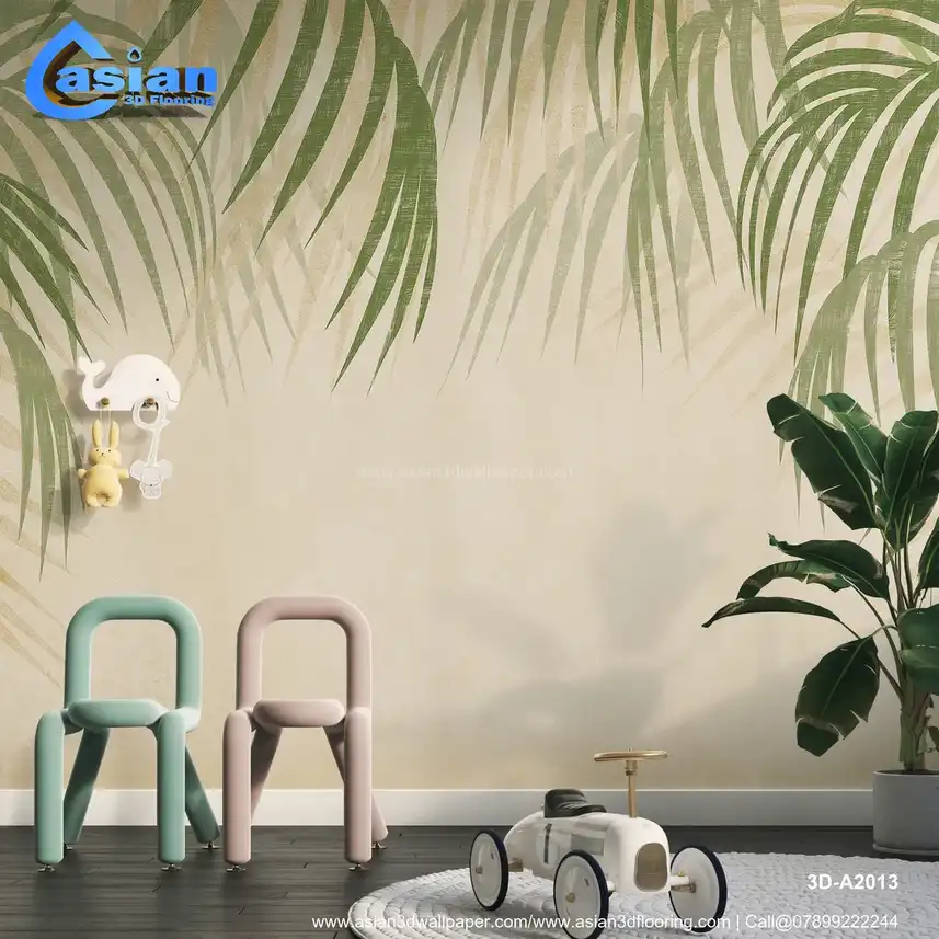 A soothing wallpaper design featuring lush palm leaves with a soft beige background, perfect for creating a tropical or nature-inspired ambiance in any space. Benefits:- A calming and elegant design that creates a peaceful atmosphere with its soft hues and tropical foliage.