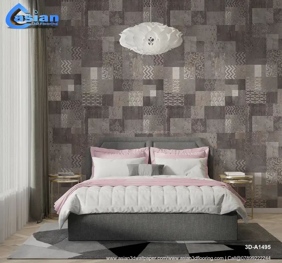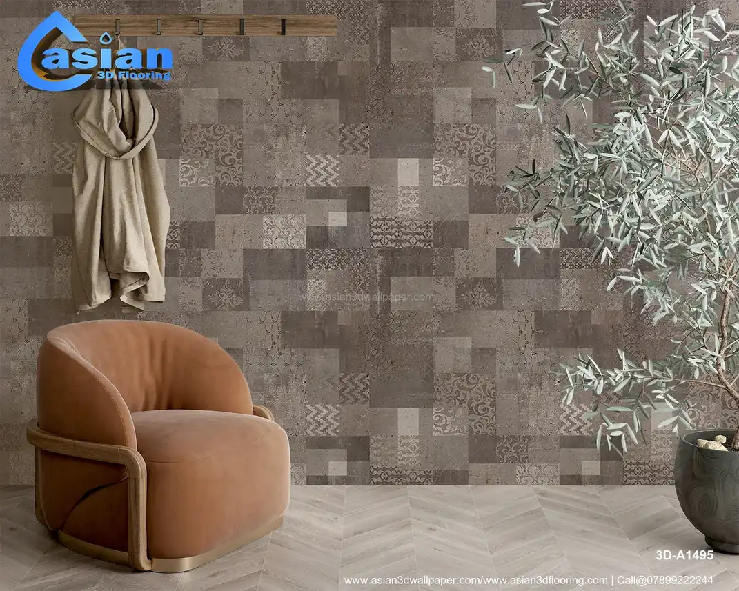 Elegant Patchwork Tile Wallpaper in Grey Tones||3D-A1495