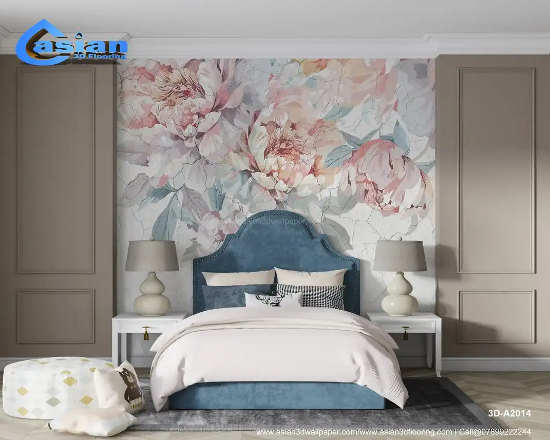 A delicate and beautiful peony floral wallpaper with soft pastel colors and a cracked white background, perfect for creating an elegant and sophisticated space. Benefits:- Adds a sophisticated and romantic touch to any room with soft floral designs and delicate hues.