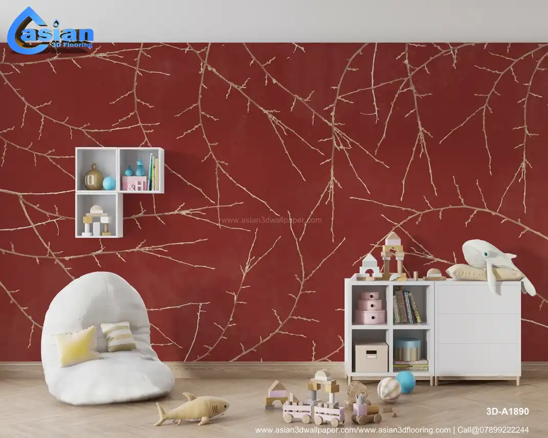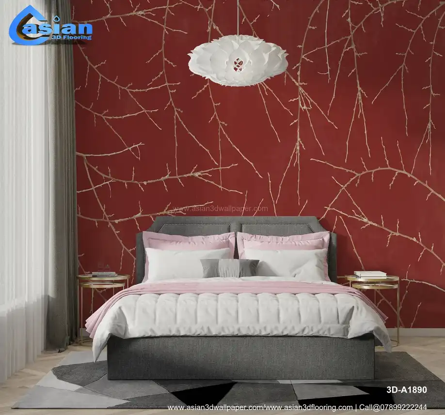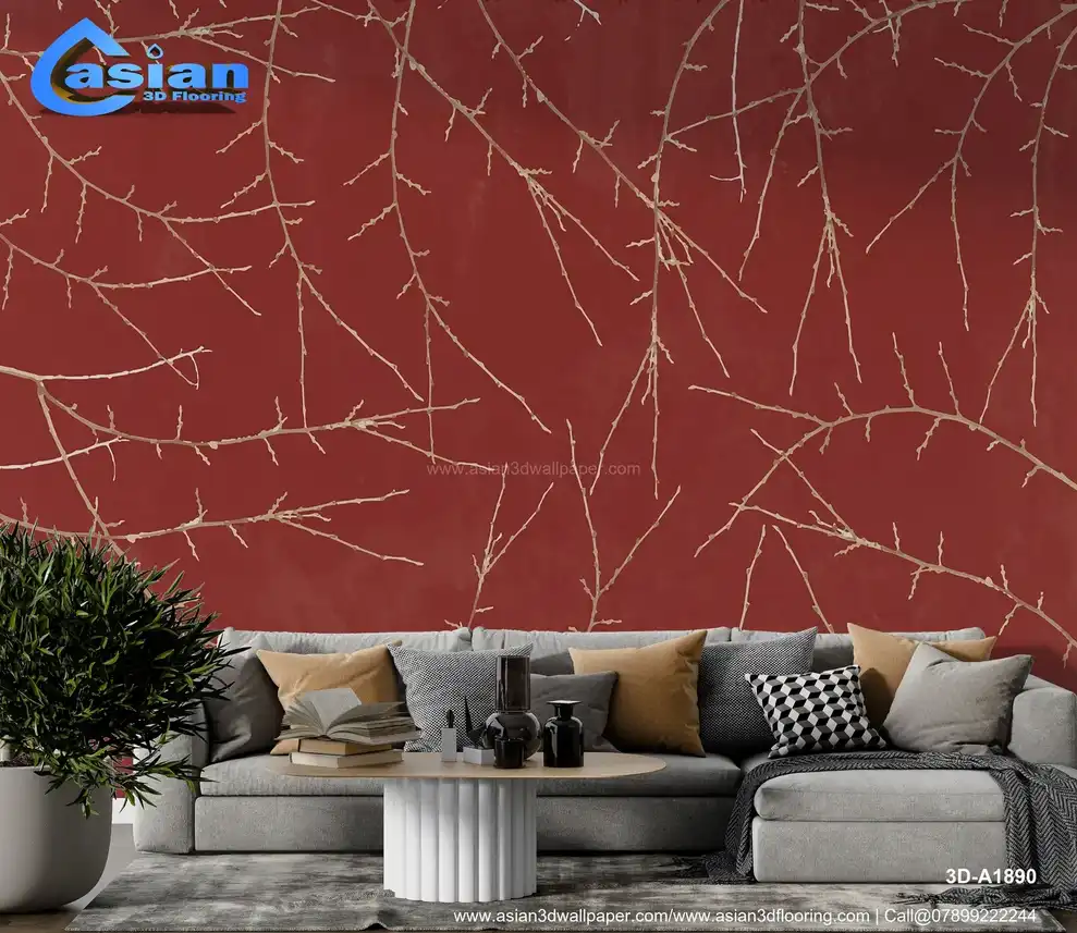 Elegant Red Branch Design Wallpaper||3D-A1890